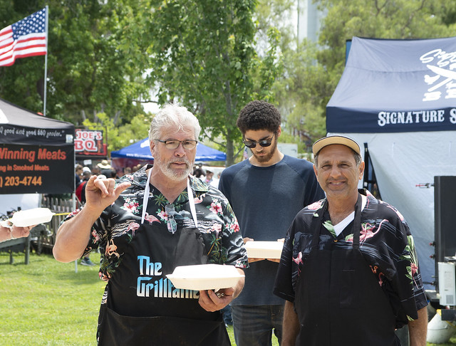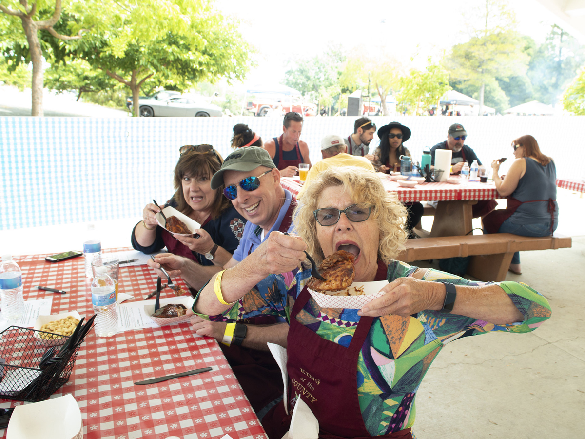 All categories must be cooked on a natural fire at the event; no advance preparation of the competition items is allowed. The chicken category is open to any type of chicken. Ribs are typically pork, but not specifically limited to that beast – some are spare ribs and some prefer baby back. This year there was one entry of beef ribs. The Chef’s Choice is open to any kind of food, but must be cooked on-site over natural fire-heat. A popular choice was beef tri-tip. Some of the creative entries were a chocolate cake, spicy tostada, a bacon and beef roll, and chicken & waffles.