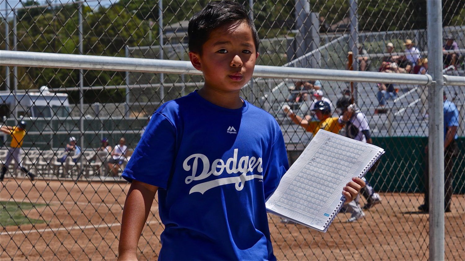 Baseball has moved on, in other words. And so it was that eight-year-old Henry Cao went to the new ballyard with friends on Saturday night, then returned with us Sunday for the Clippers first-ever day game. My wife is Henry’s tutor and we knew about the scoreboard issue. But we also know Henry is good at math, so we figured he could use a scorebook to follow the game.