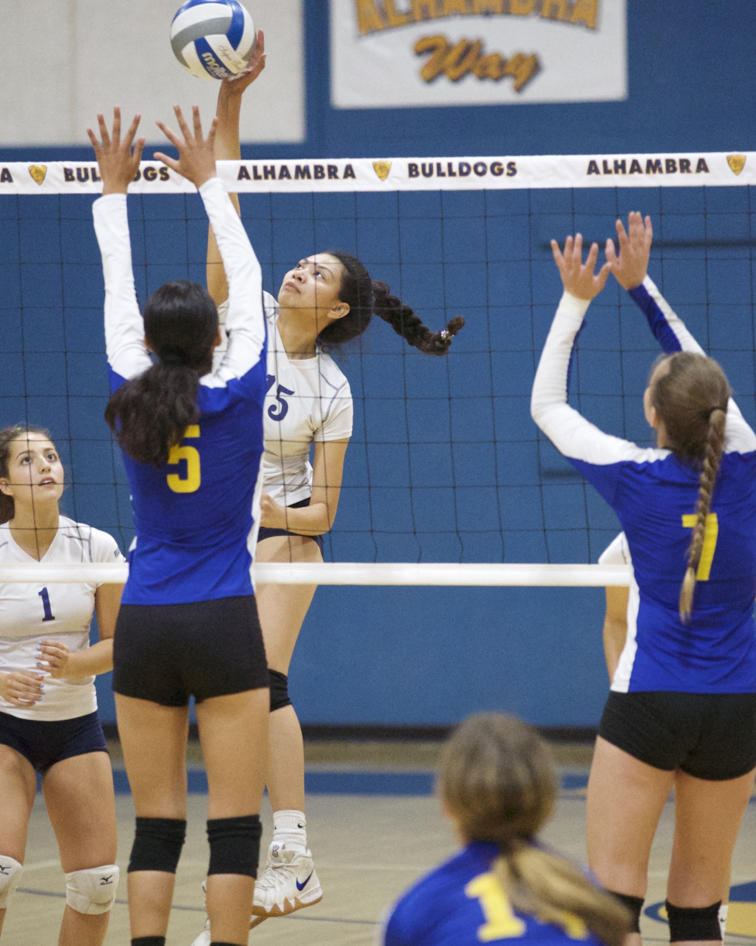 Alhambra girls volleyball dominated Pinole Valley in three sets.