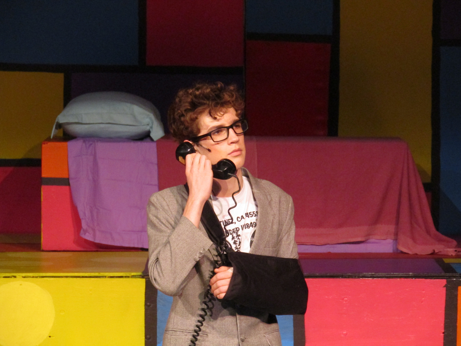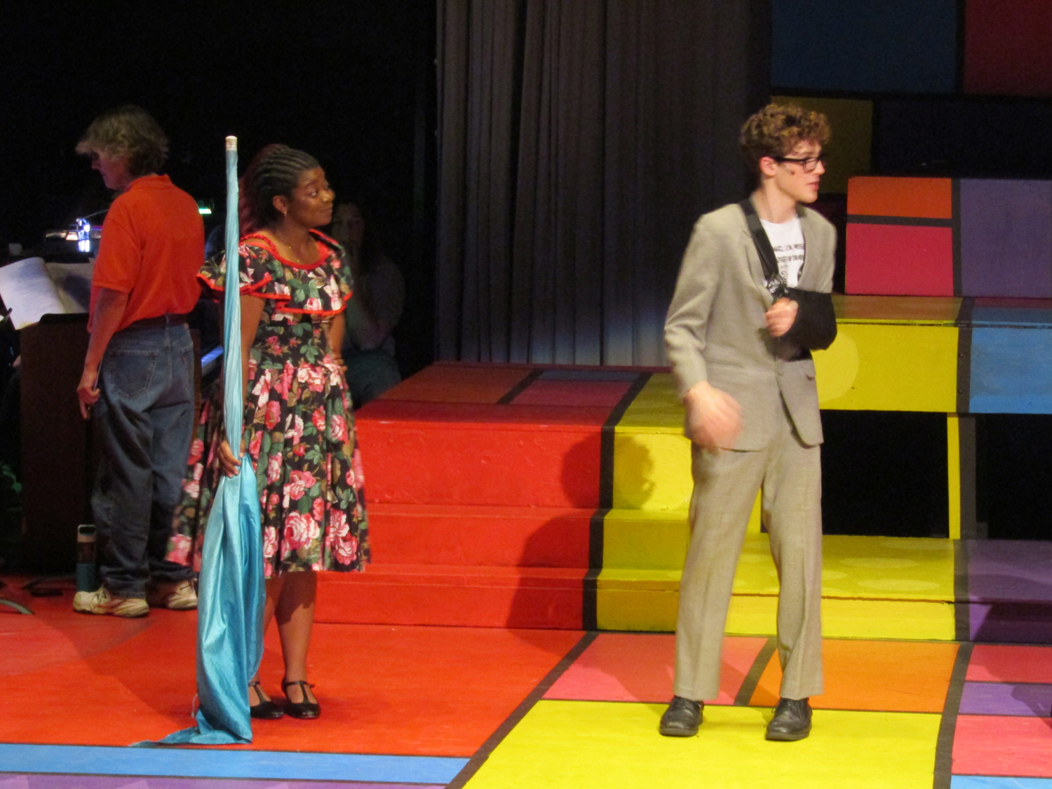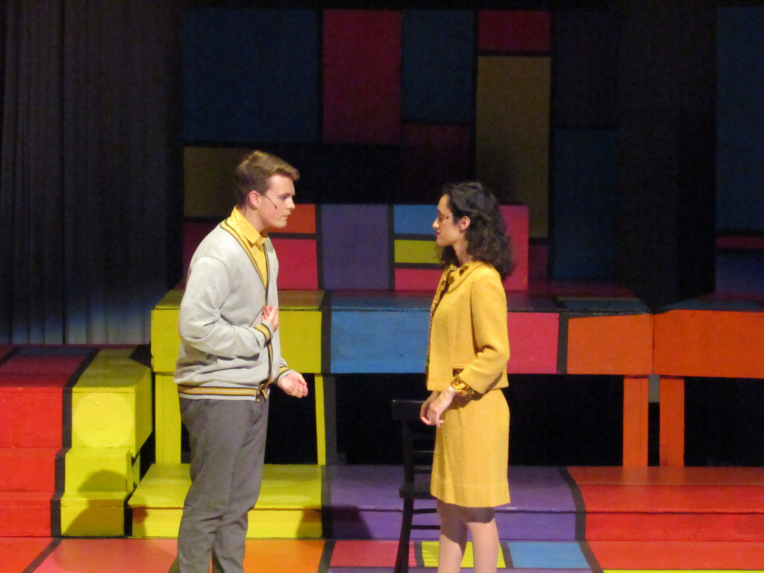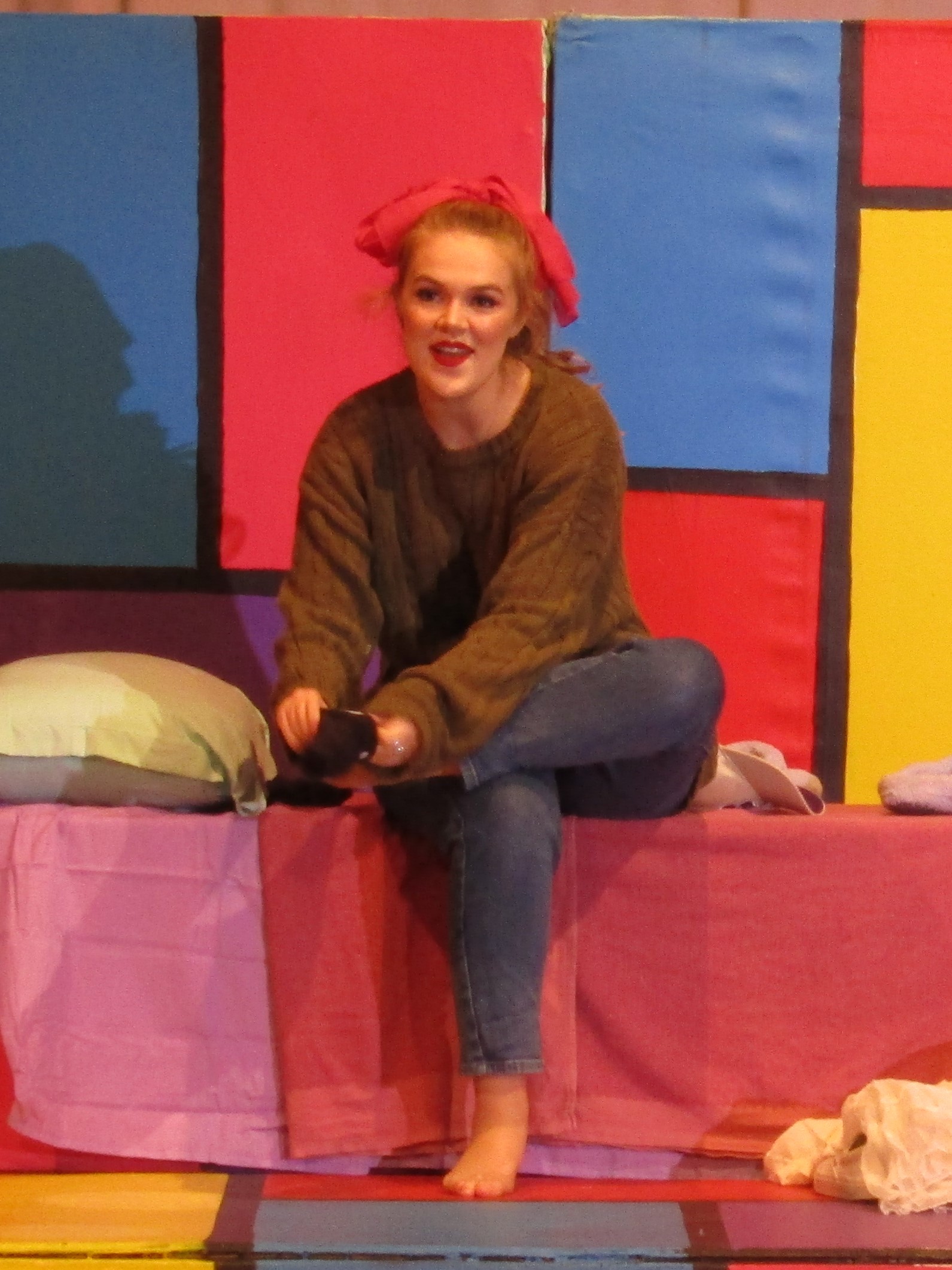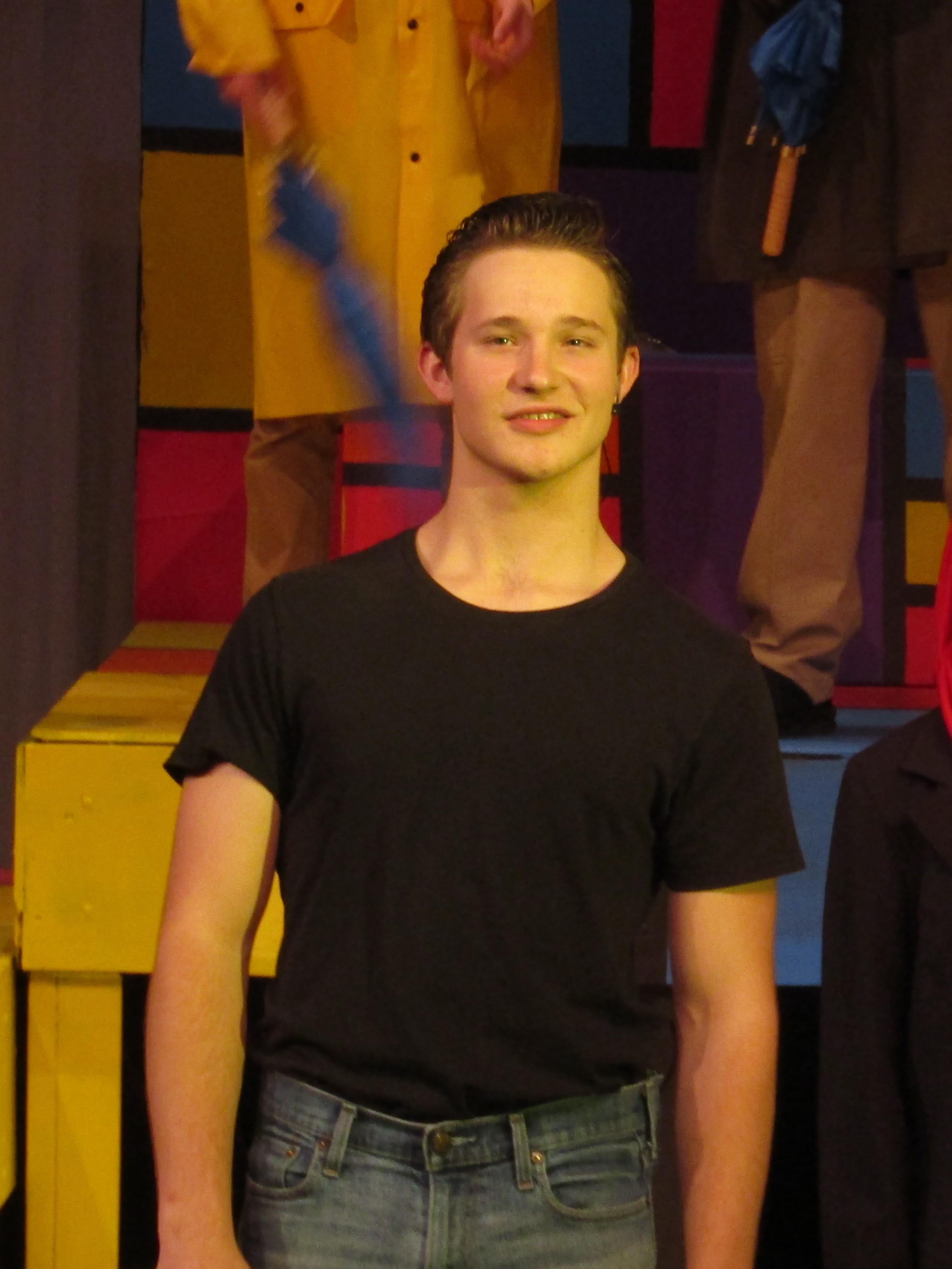 Amaya DeShasier, sound technician, agreed with Elam as she attached a mic to Jonah Leib who plays Randal, the kid brother. Ms. Sara Stafford, costume and tech Goddess, has taught her students well.