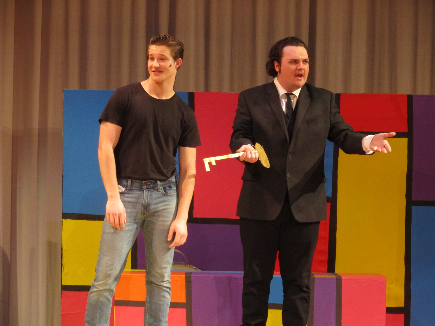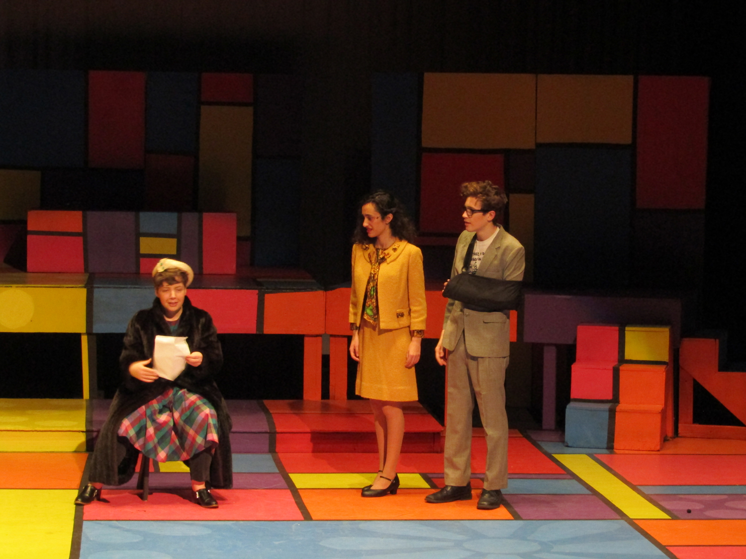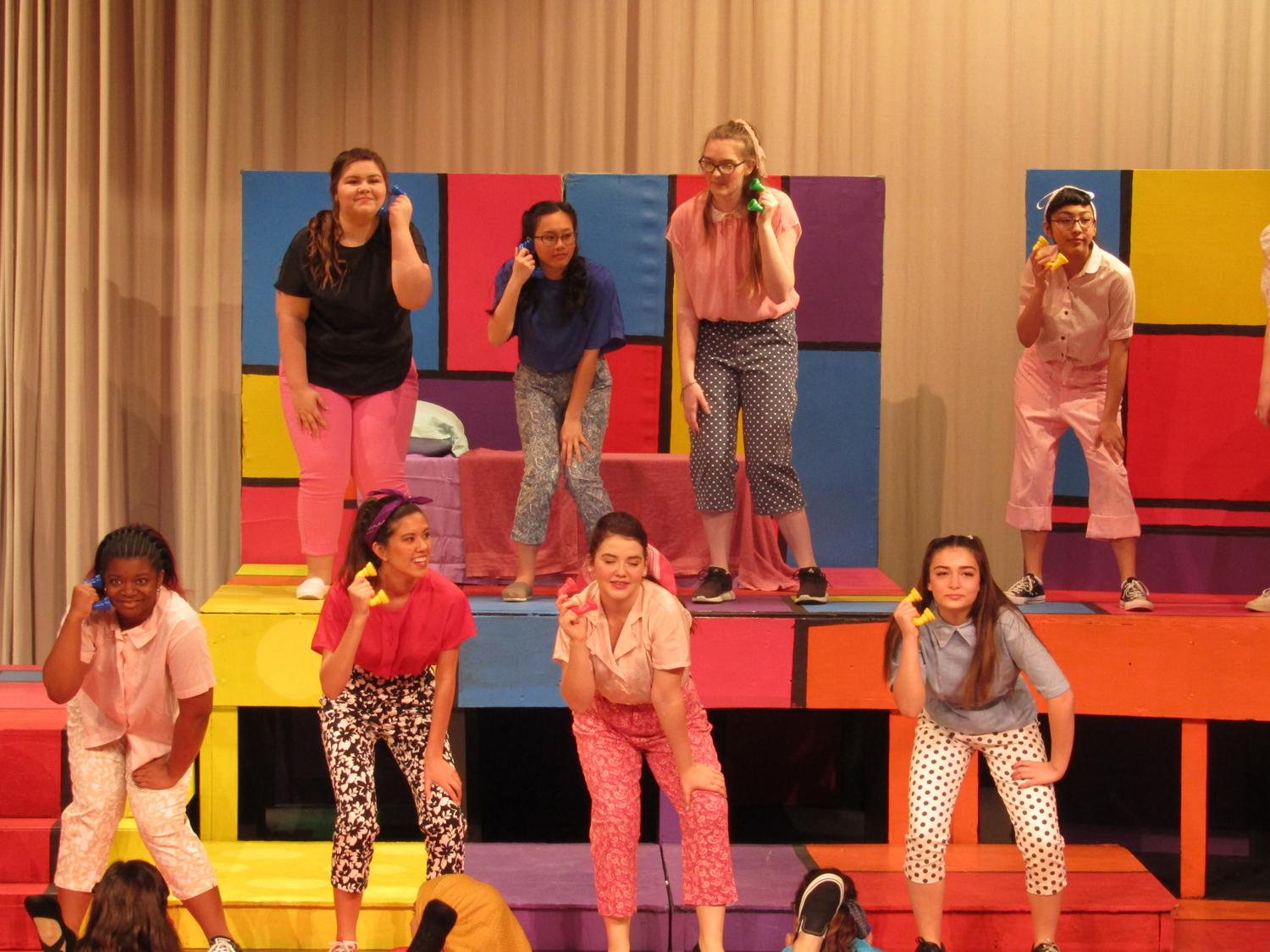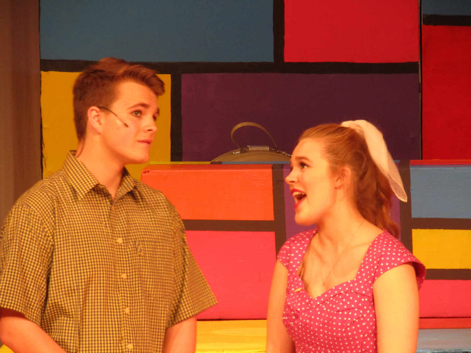 Amaya DeShasier, sound technician, agreed with Elam as she attached a mic to Jonah Leib who plays Randal, the kid brother. Ms. Sara Stafford, costume and tech Goddess, has taught her students well.