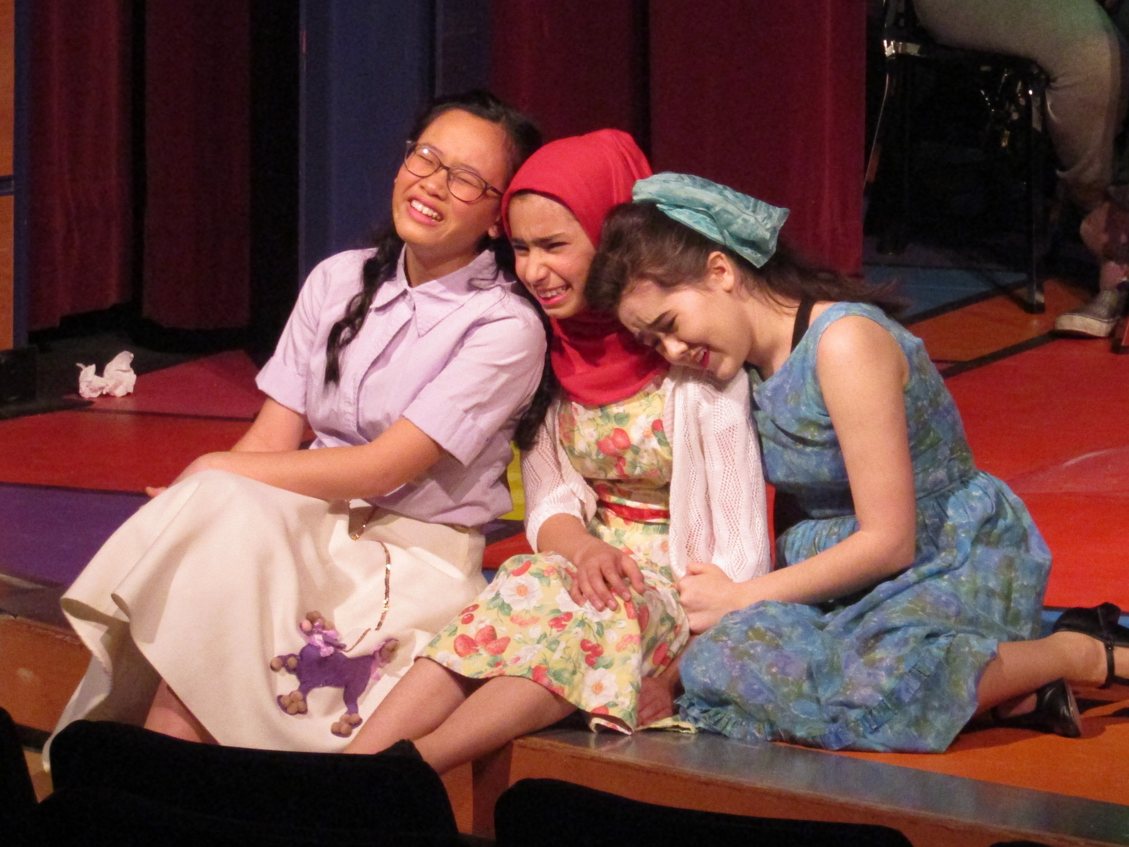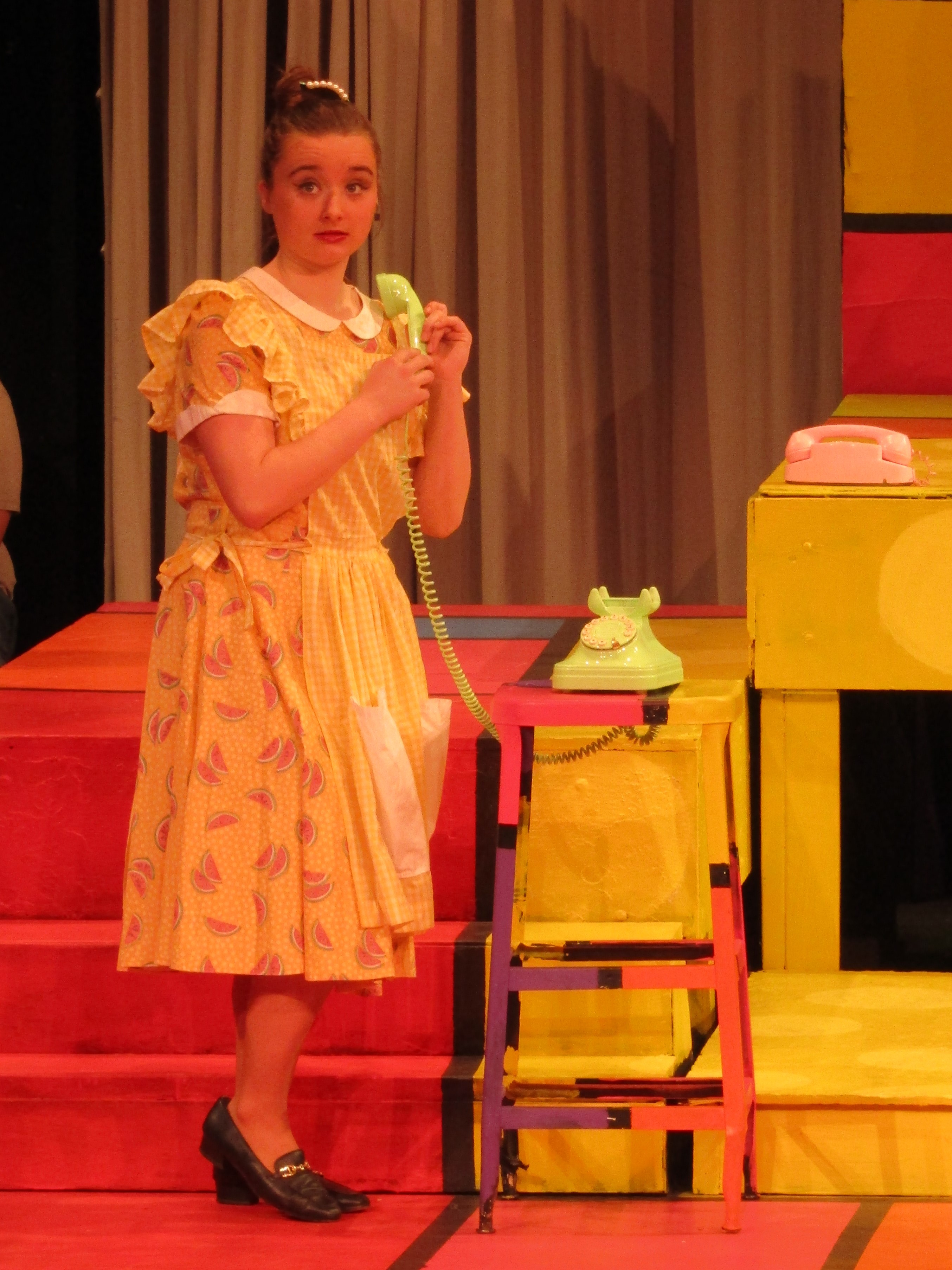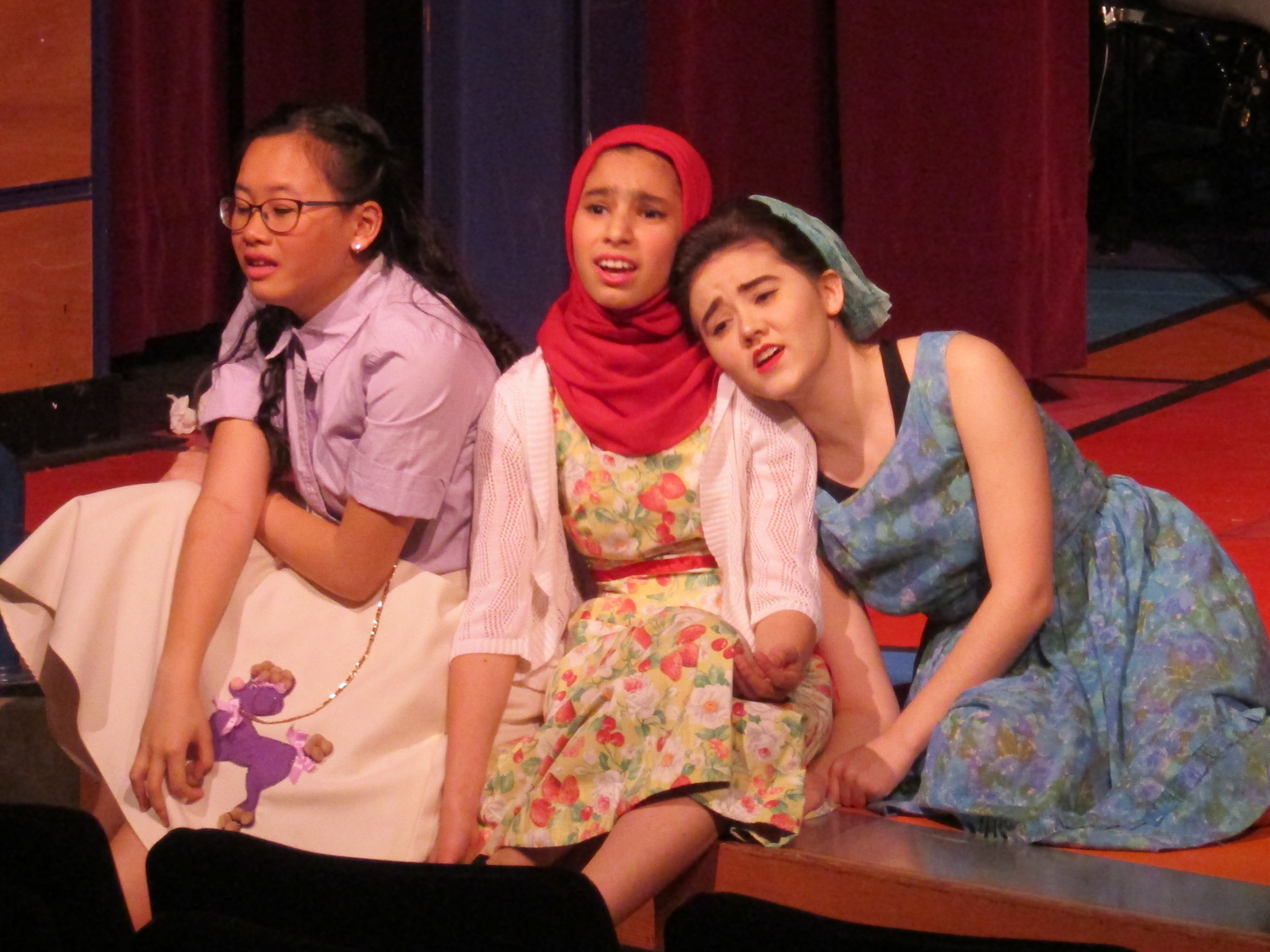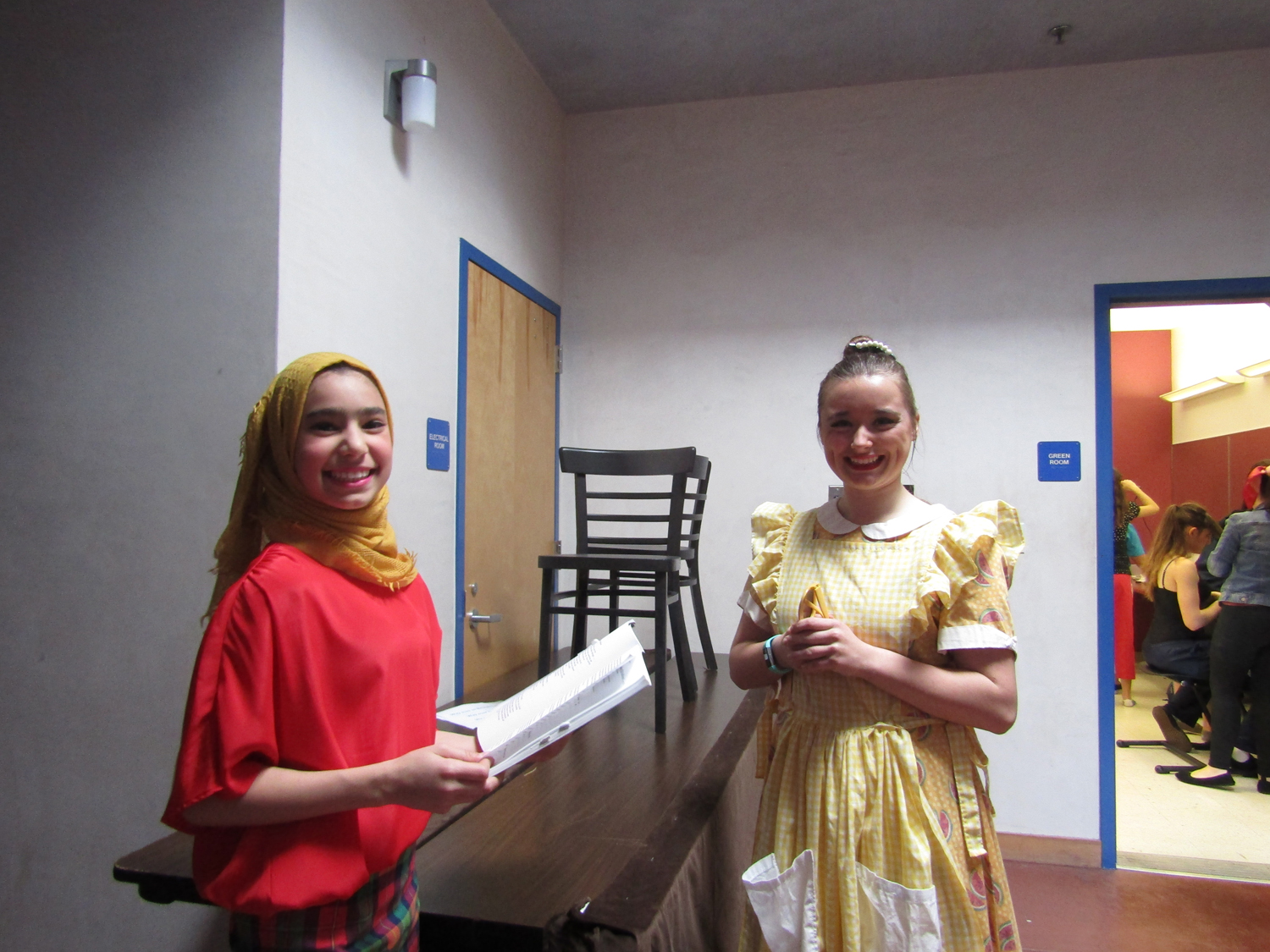 Backstage, the actors are in costume, having attended to a last-minute tuck here and a little more make-up there. “I love drama!” exclaims Kira Garza, a junior who plays teenager ‘Suzie’ Kira exclaims “It feels like being a part of a family.” As running crew member Samantha Roberds, helps Kira on with a costume coat, Samantha agrees and says she likes working backstage. She can be creative and she likes being “part of something bigger.”