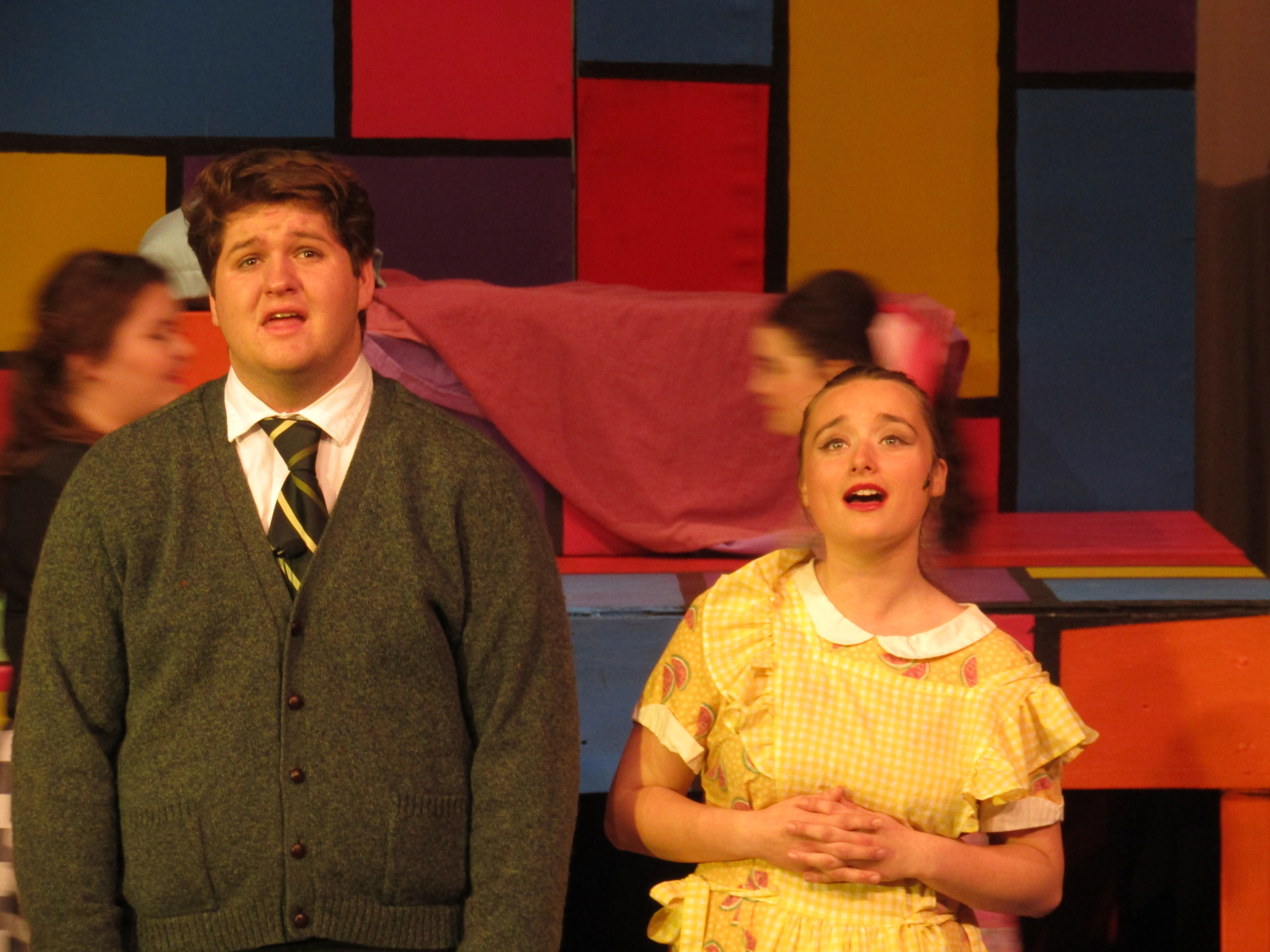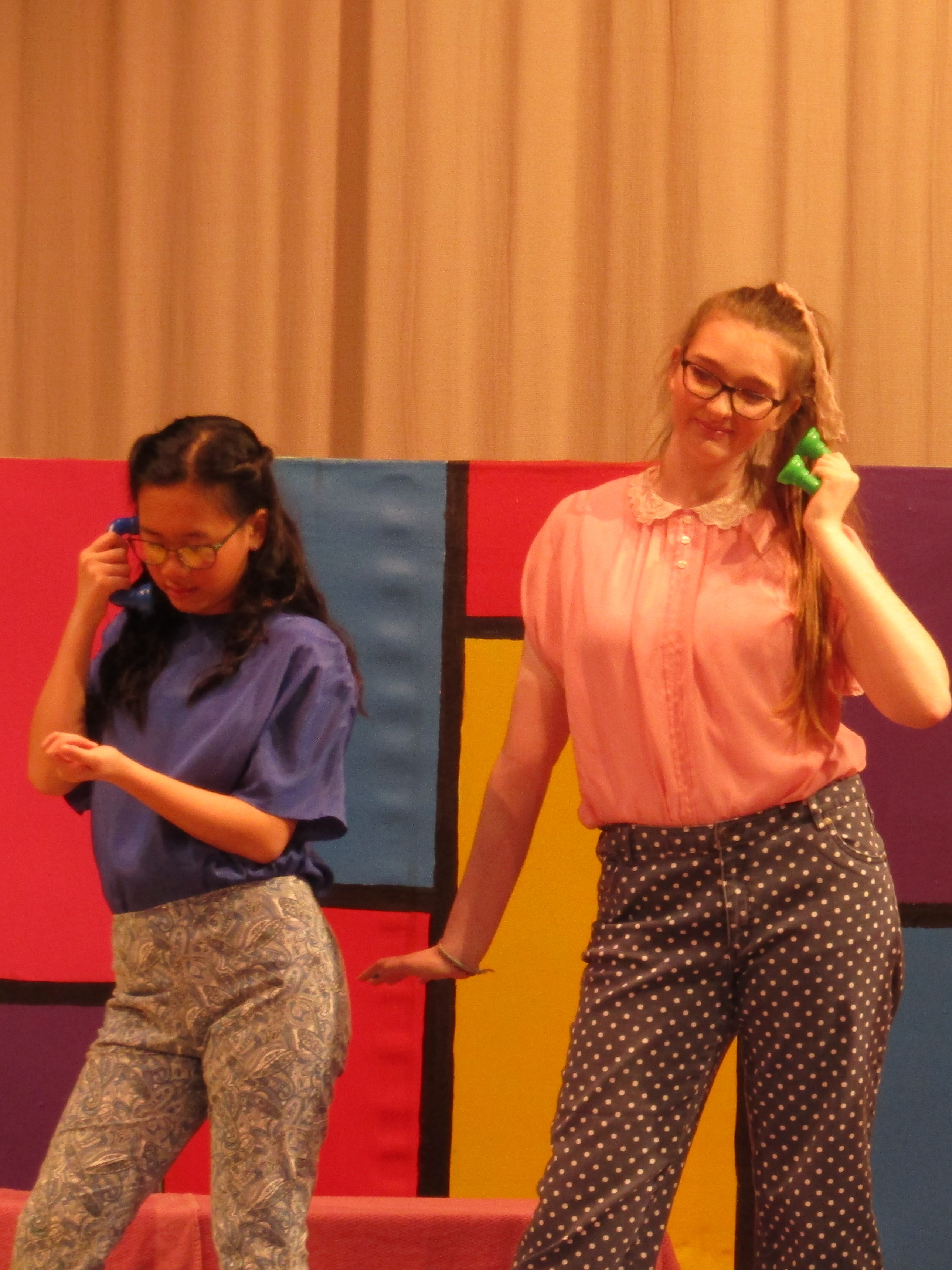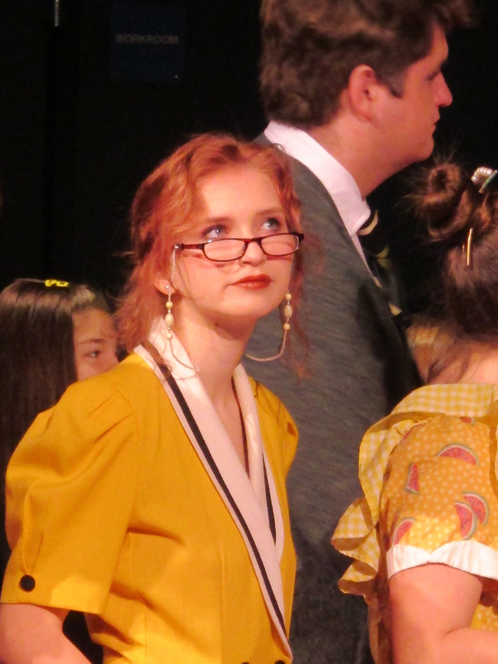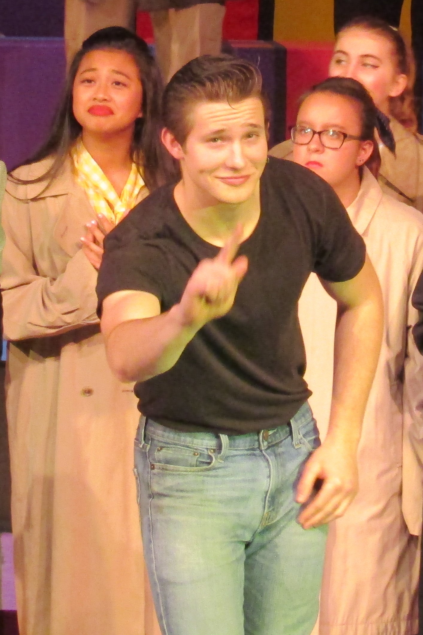 Backstage, the actors are in costume, having attended to a last-minute tuck here and a little more make-up there. “I love drama!” exclaims Kira Garza, a junior who plays teenager ‘Suzie’ Kira exclaims “It feels like being a part of a family.” As running crew member Samantha Roberds, helps Kira on with a costume coat, Samantha agrees and says she likes working backstage. She can be creative and she likes being “part of something bigger.”
