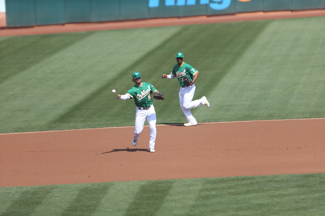 In the first, Tommy La Stella broke up the perfect game like he did in Game 1, though he was the second batter and not the 19th batter when he singled on Wednesday. The A’s loaded the bases on singles from Ramon Laureano and Chad Pinder before Matt Olson got a chance to hit. He sent a bouncing ball to second, where rookie Nick Madrigal booted the ball in the shift, allowing both La Stella and Laureano to score, putting the A’s in front 2-0.