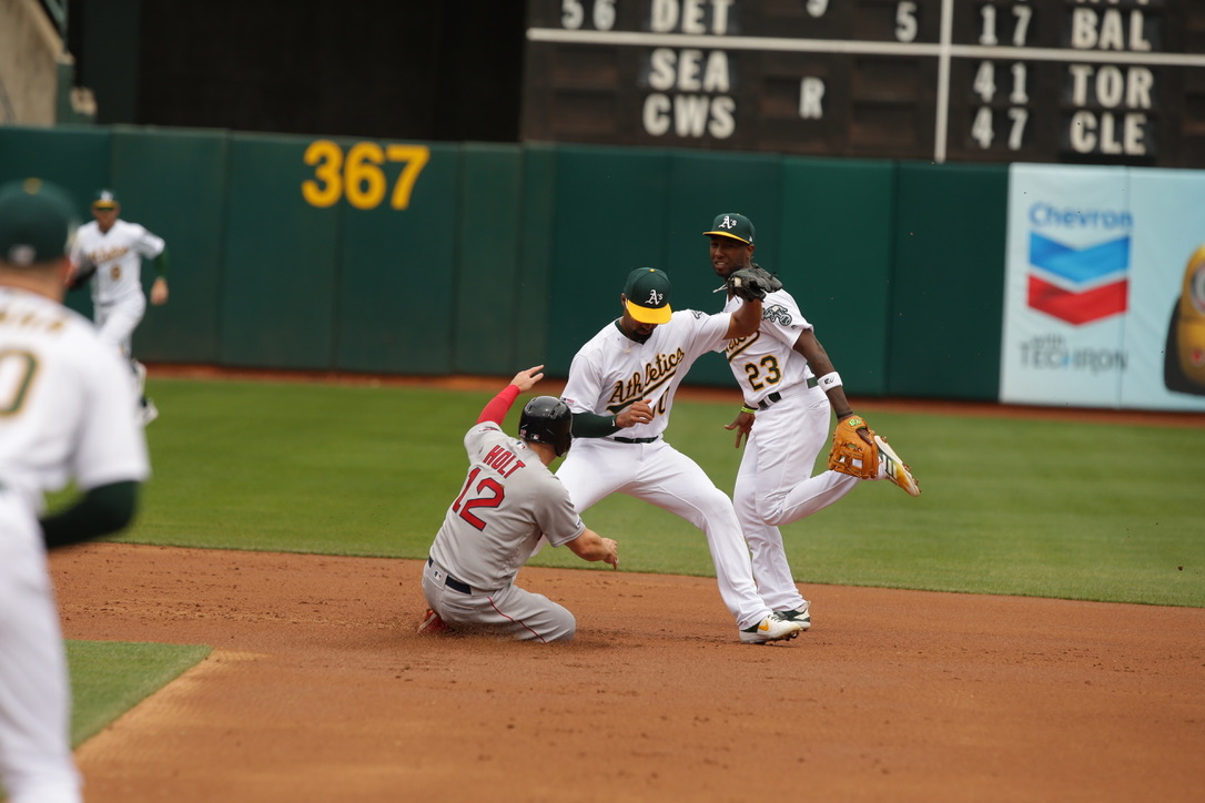 Oakland- Center fielder Ramon Laureano threw out another Red Sox runner in a key spot, and the Oakland Athletics kept Boston stumbling with a 7-3 win on Thursday. Laureano tossed out three runners as the A’s took three of four in the series. Stephen Piscotty went 4 for 4 with a home run, double and five RBIs to help Oakland win for the fifth time in six games. The Red Sox fell to 2-6, the worst start for a defending World Series champion since the stripped-down Marlins struggled in 1998. J.D. Martinez homered for Boston.