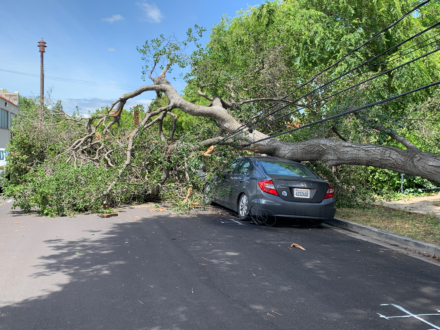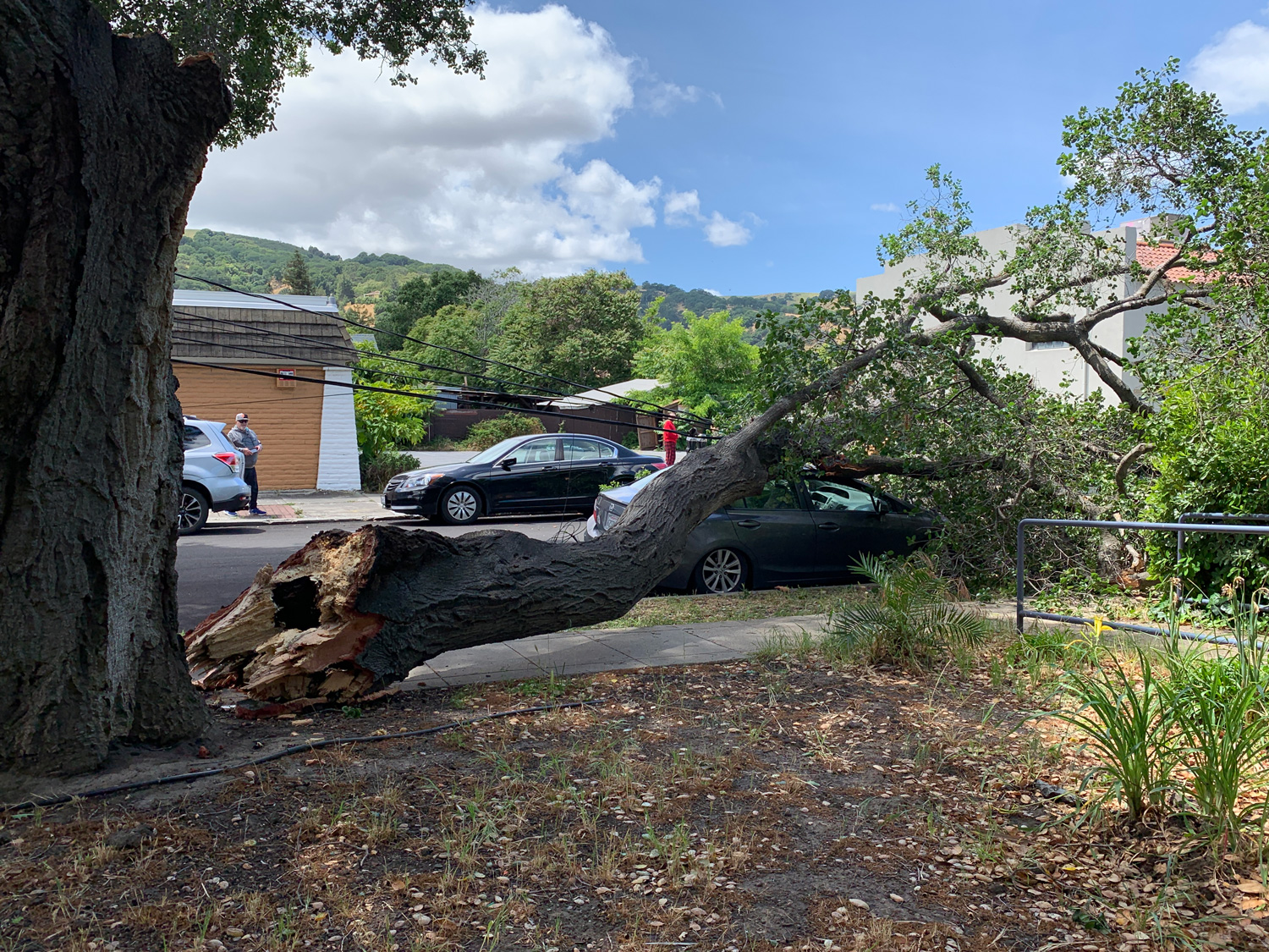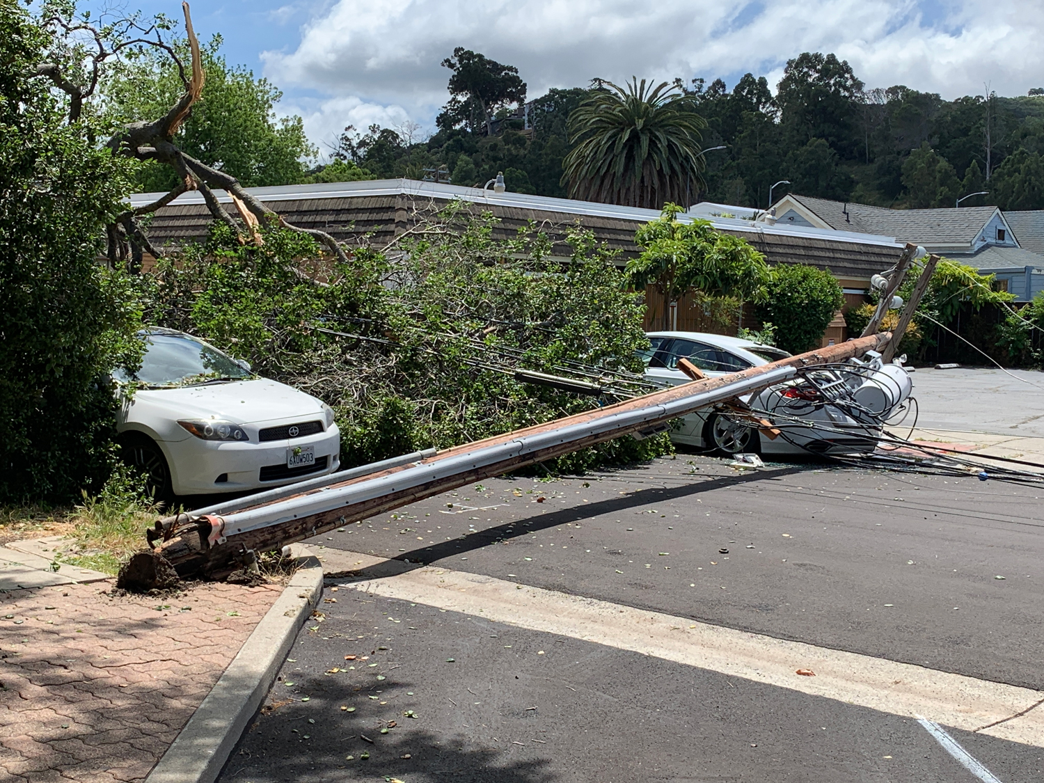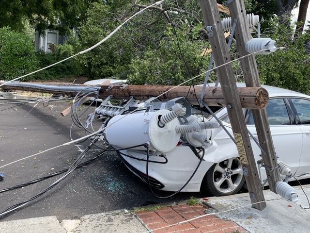 Around 1:00 p.m. in the 800 block of Estudillo St. in downtown Martinez, a partially fallen tree pulled down at least two utility poles, damaged at least four vehicles and caused power outages all over Martinez.
