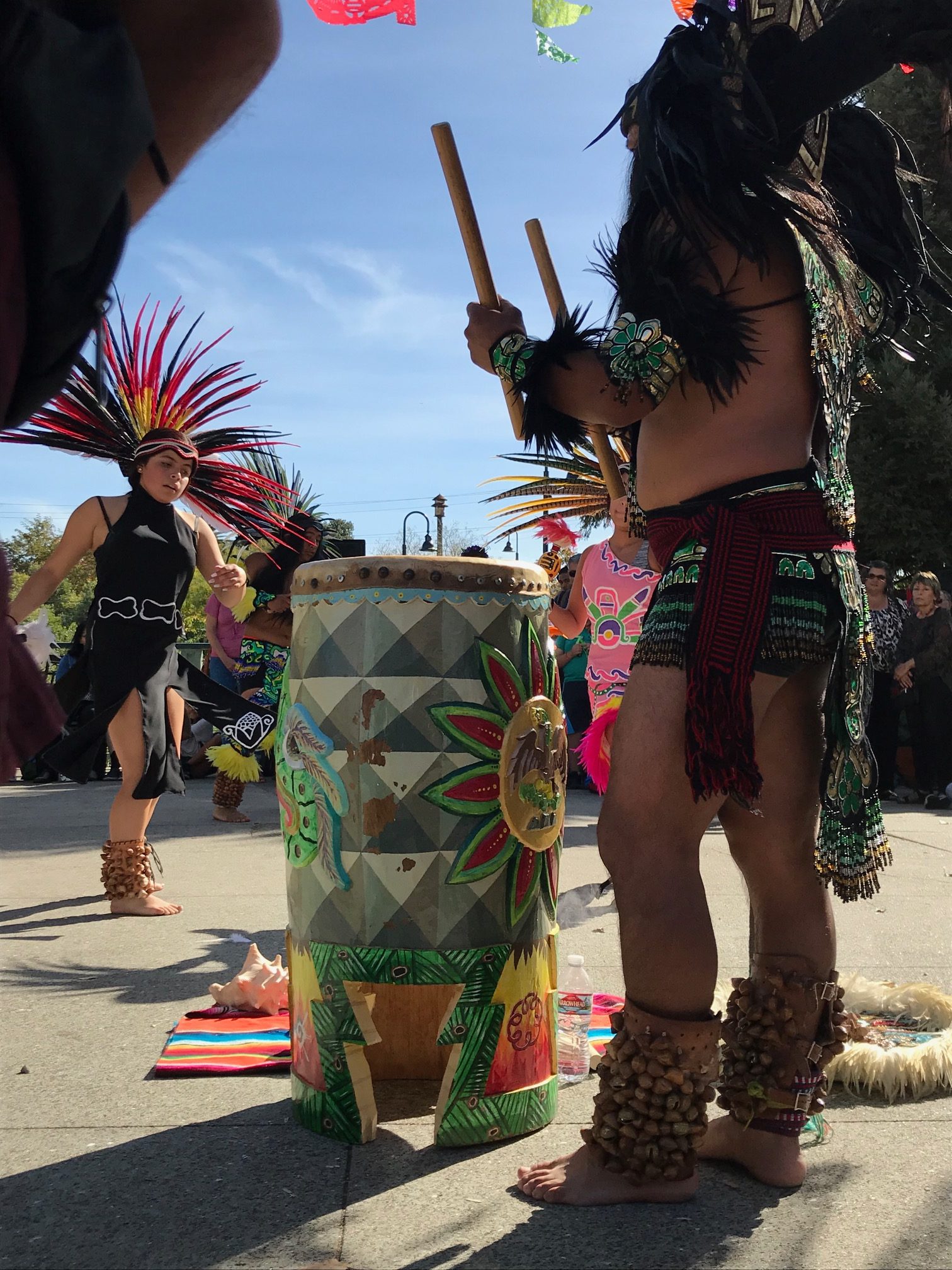 Ometekpatl Aztec Dancers demonstrated their cultural dances to the rhythm of a large upright drum played not only to keep time but also to represent a heartbeat for the performers.