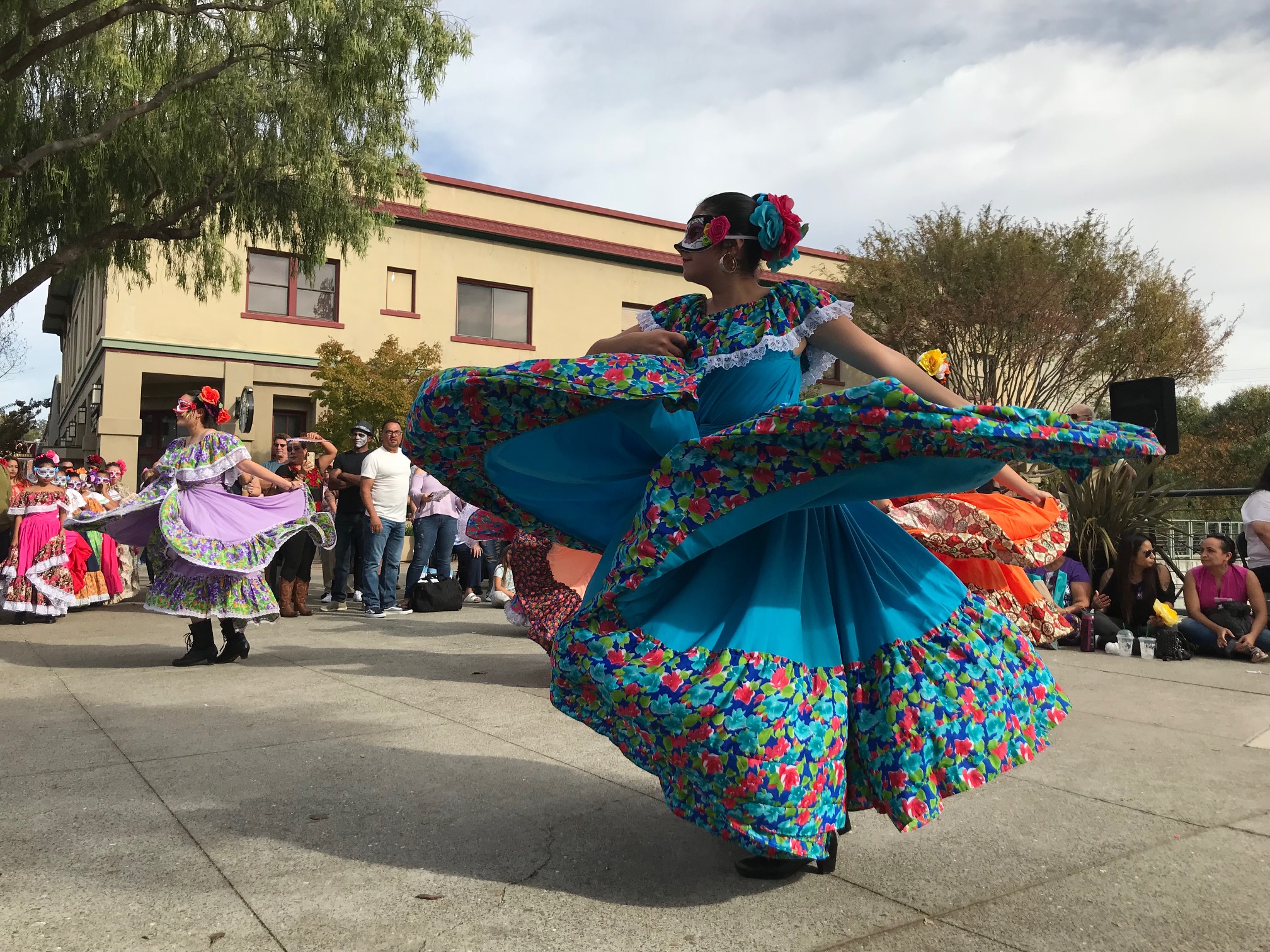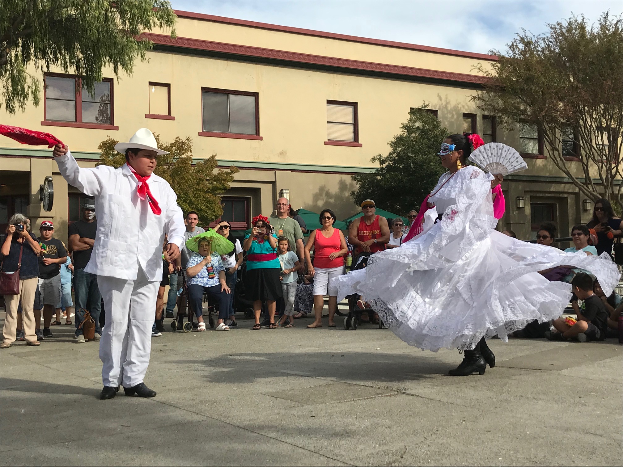 Also dancing was Martha Gutierrez’s Baile Folkloria, which has classes Thursdays at Las Juntas Elementary School. The troupe filled the Main Street Plaza in colorful dresses with flowing skirts.