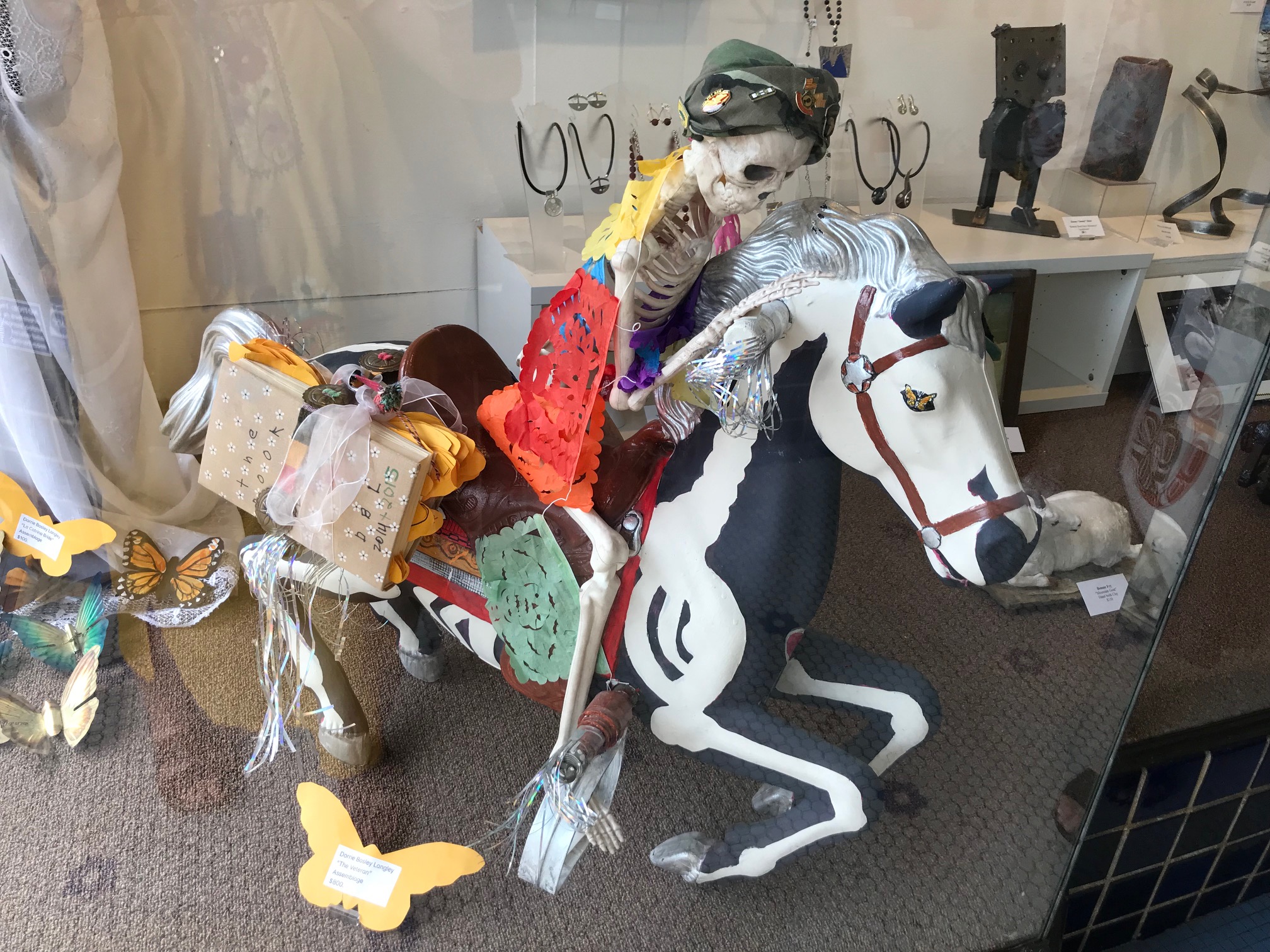 Some of the nichos were created earlier at a crafts workshop at Martinez Library, where Dorrie Langley and Lorena Castillo guided participants in assembling the themed shadowboxes and dressed skeletal Catrinas, an iconic Dia de Los Muertos female figure with a sugar skull face and usually seen wearing a fancy hat.