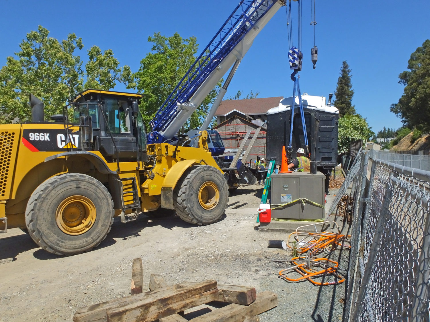 The company needed daylight for good visibility to move the long load, so work wasn’t supposed to take place after sundown, he said. And because the PG&E equipment prevented pulling the car straight out from its Walnut Creek location, the crane had to be used to lift it up over the transformer.
