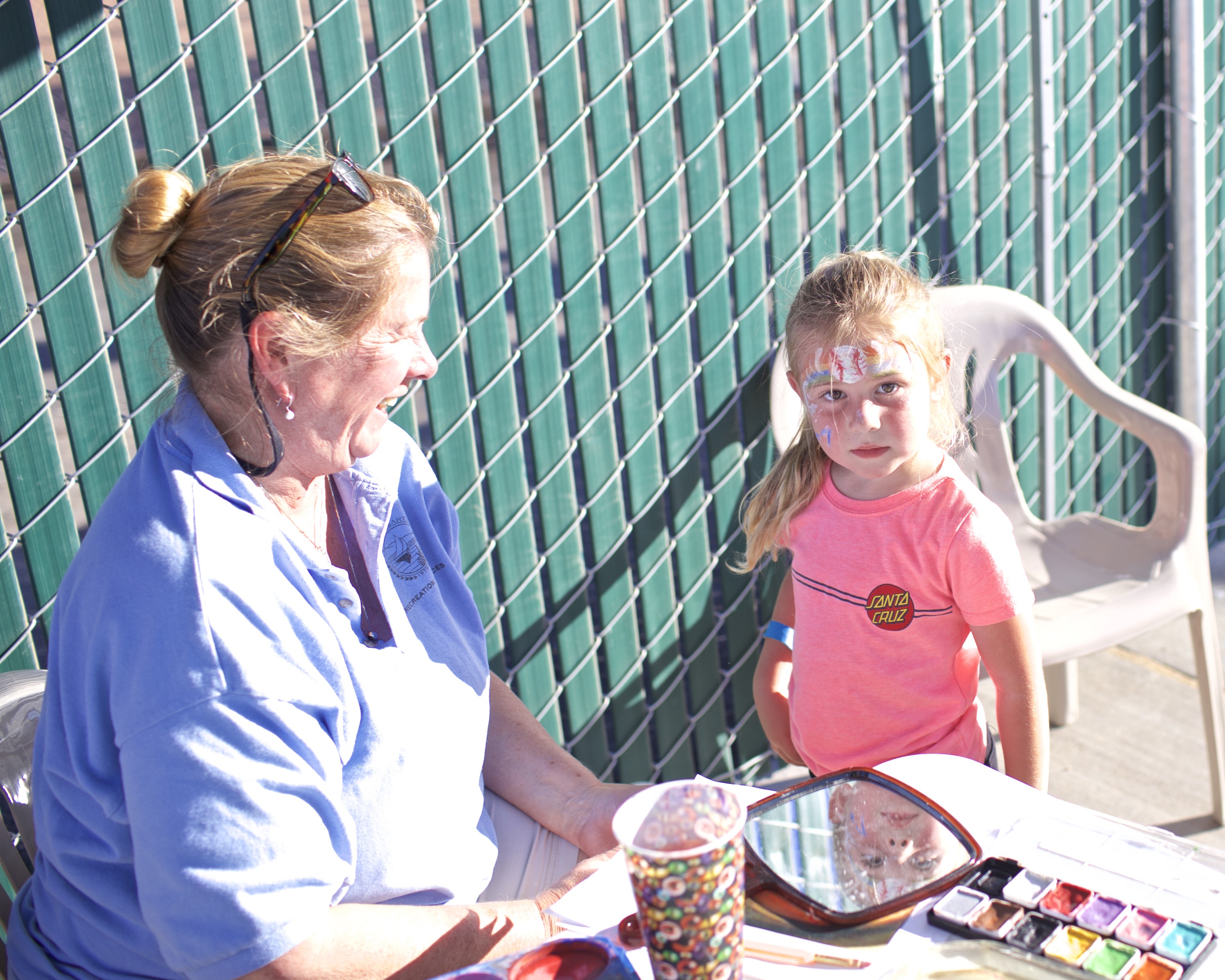 Martinez Clippers Fanfests Face painting Patty and Clippers fan Leah Mechling Photo by Mark Fierner ( Martinez News-Gazette )