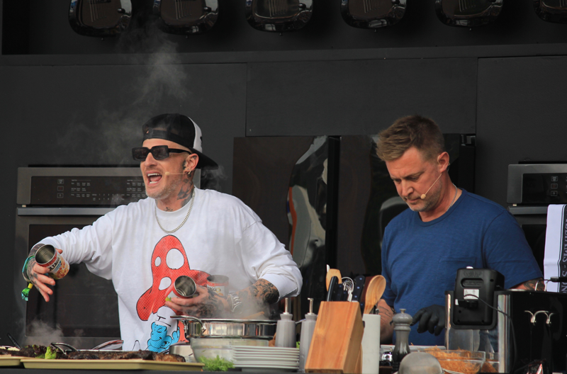 This year they didn’t hold back with fun mashups between local celebrities, top chefs, rock stars and more. Some of the notable combos included chef Aaron May with former Oakland Raiders’ Hall of Famer Charles Woodson, and Bay Area native and Olympic Gold Medalist Johnny Moseley. Or there was chef Michael Mina who teamed up with Adam Sobel, Tre Cool from Green Day, former Oakland Athletics Hall of Famer Rickey Henderson with the WWE’s The Miz and Maryse. Two of biggest crowds came out for the legendary food truck creator Roy Choi with Dogstar, which is Keanu Reeves’ band as they made Korean style burritos. Dogstar also made their first live appearance together over the weekend. The other largest crowd was for the renowned family chefs Voltaggio Brothers with RZA and Ghostface Killah of the Wu Tang Clan and Warren G as they celebrated 30 years of Wu Tang, 29 years of Regulators and 50 years of hip hop while making 20 dishes for the trio of acclaimed rappers.