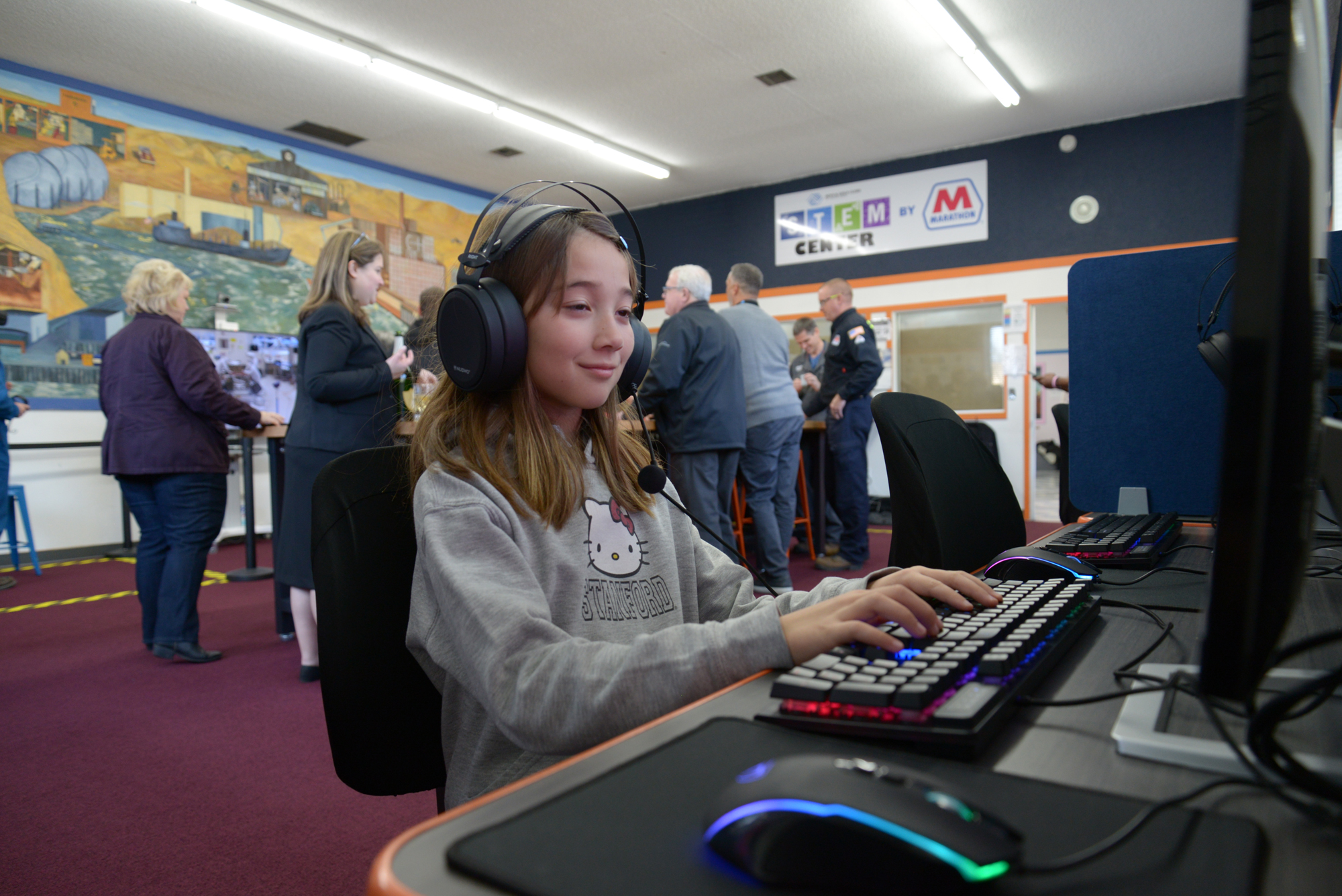 Kaila Rose, 8 years-old, works at a computer station. Kaila is the daughter of Julian Rose, Port Captain for Marathon Petroleum (MNG photo)