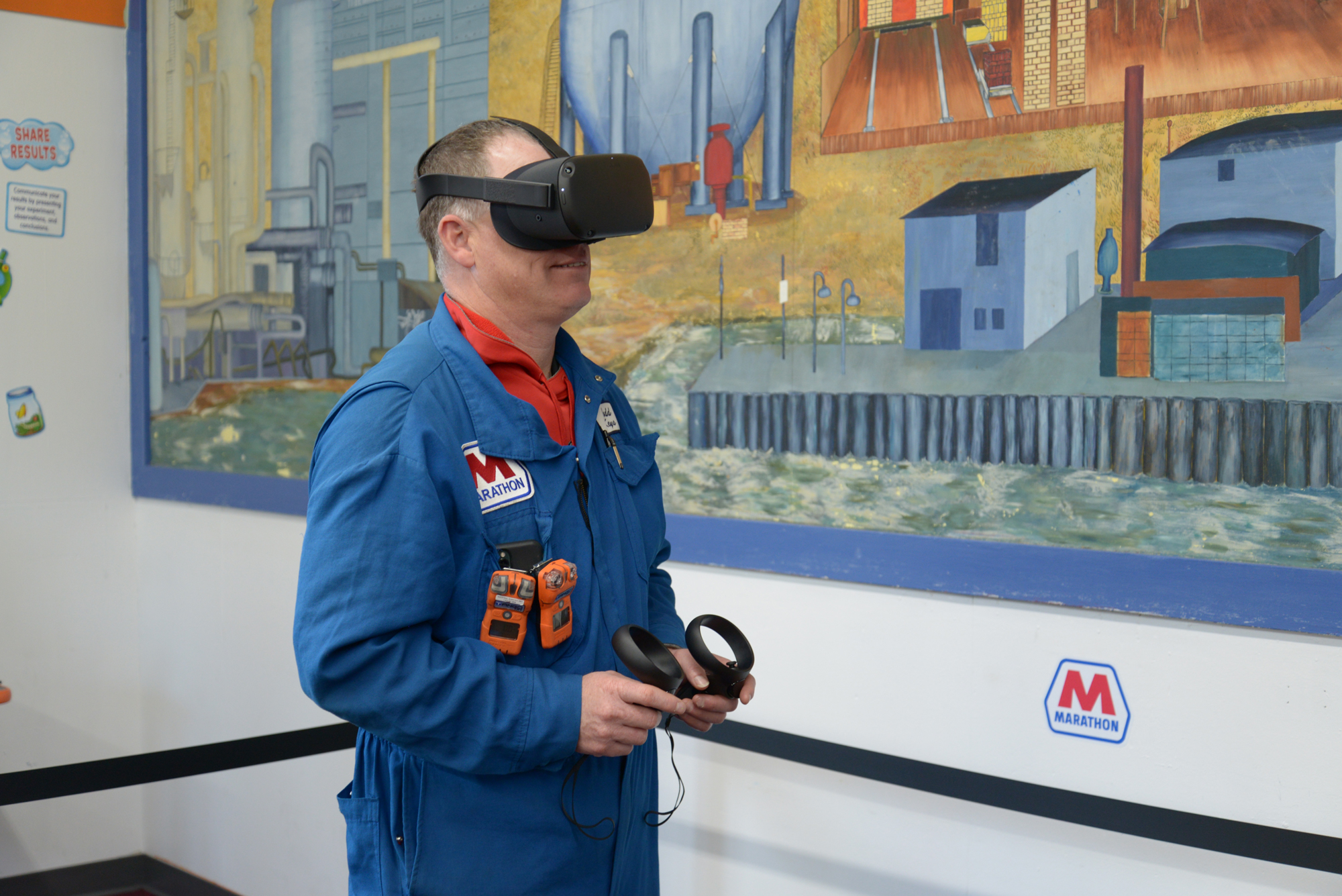 A Marathon Petroleum employee tests a virtual reality headset. (MNG photo)