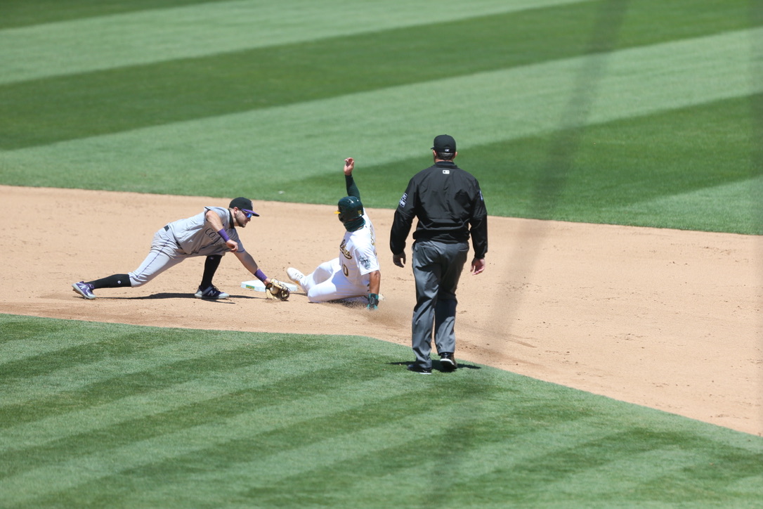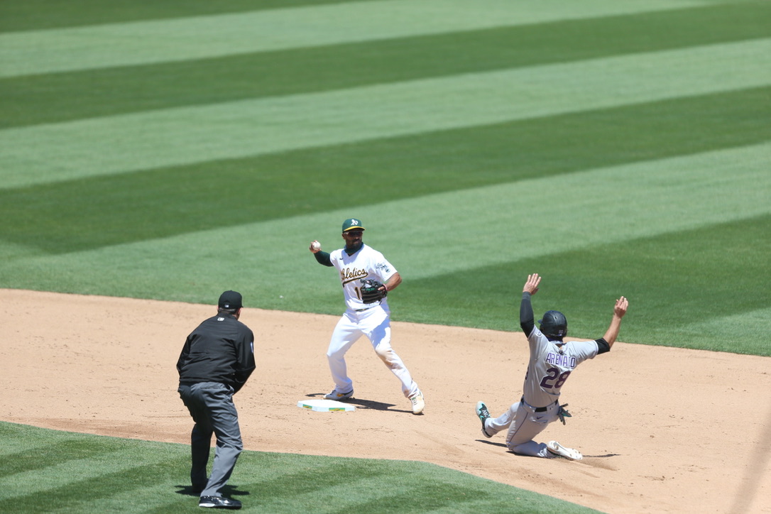 OAKLAND, Calif. — Nothing has been ordinary about 2020. After a four-month hiatus without baseball, games are being played in front of cardboard cutouts of fans and giant teddy bears. What’s just as strange: the struggles of the Oakland A’s offense through six games, which failed to get going on Wednesday afternoon against the Colorado Rockies. After a home run in the first inning, the A’s mustered only four additional hits en route to a 5-1 loss to the Rockies, dropping both games of the interleague series and finishing the opening home stand 3-3.