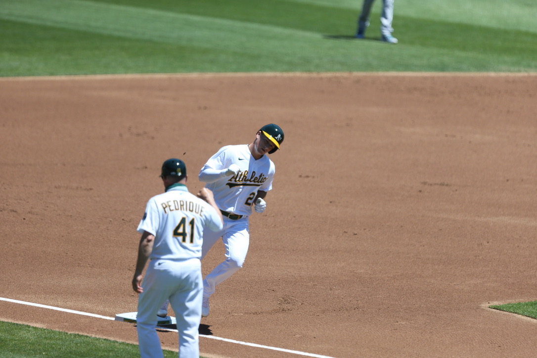 Aside from a five-run first against Shohei Ohtani and the Angels on Sunday, the A’s have struggled to get their bats going early in games. Matt Chapman helped the A’s put those thoughts somewhat to rest after both Marcus Semien and Ramon Laureano struck out on three pitches. Chapman lined a 3-1 fast ball that narrowly snuck over the wall in left-center field. It marked the first home run of the season for Chapman, and the first home run for Oakland in the first inning of a game.