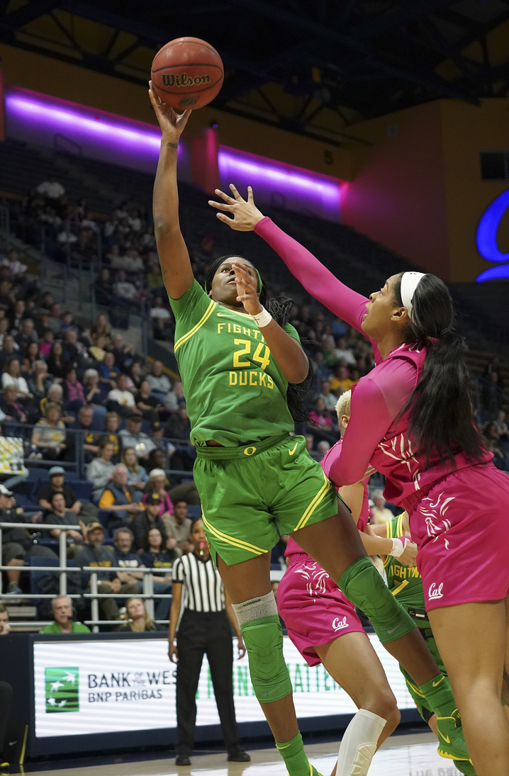 BERKELEY – Senior Jaelyn Brown became the 31st Cal women’s basketball player to score 1,000 career points but the Golden Bears fell to No. 3 Oregon 93-61 on Friday night at Haas Pavilion.