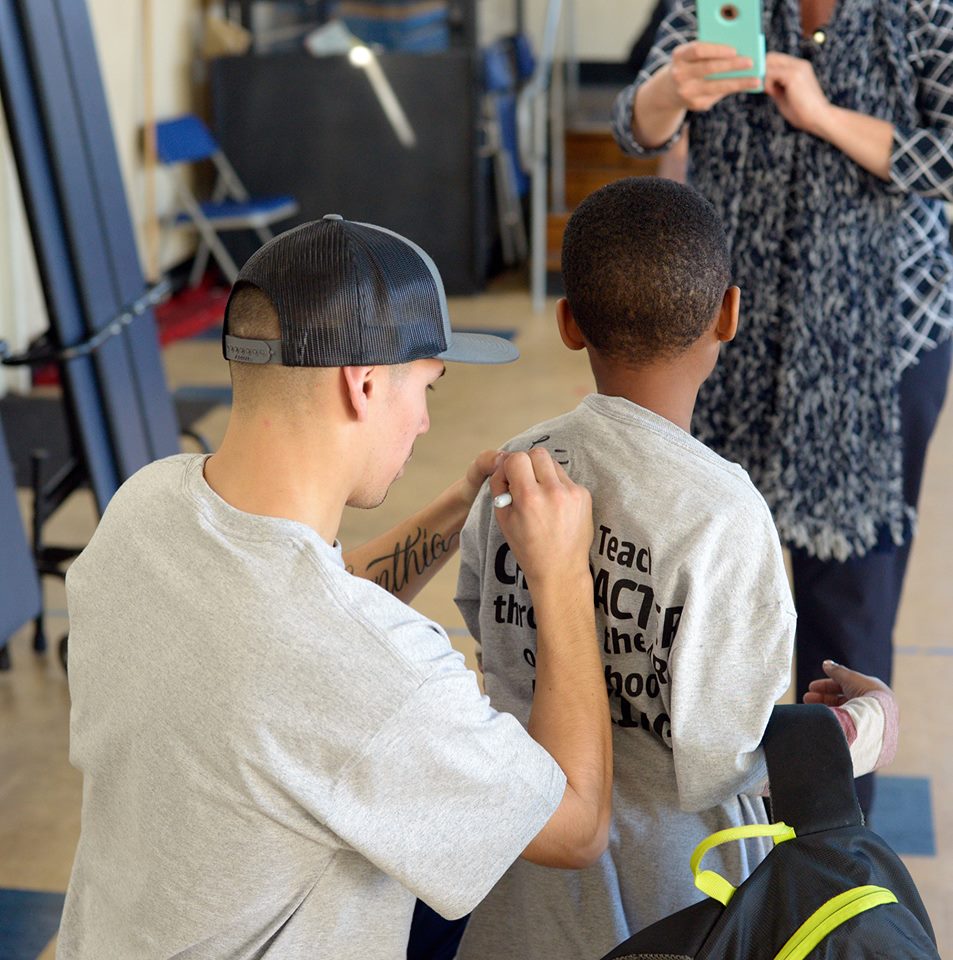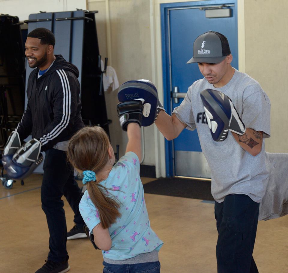 Professional boxer Manuel “Tino” Avila visited Las Juntas Elementary School and worked with students in a Feet First Foundation training session.