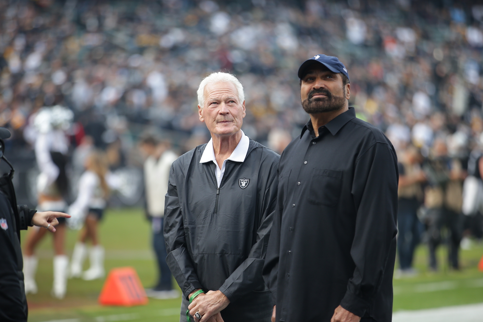 Oakland Raiders vs Pittsburgh Steelers Raider legend LB #41 Phil Villapiano with Pittsburg Hall of Fame RB #32 Franco Harris Photos by Tod Fierner
