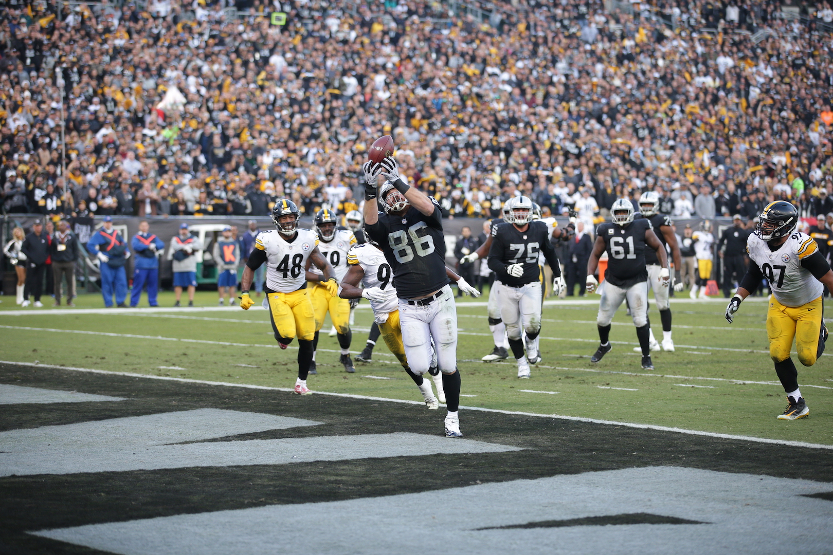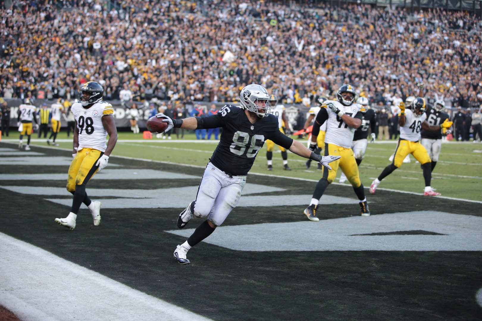 Oakland Raiders vs Pittsburgh Steelers TE #86 Lee Smith Catches touch down Pass Photos by Tod Fierner ( Martinez News-Gazette )