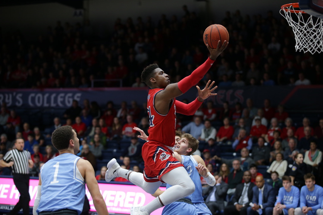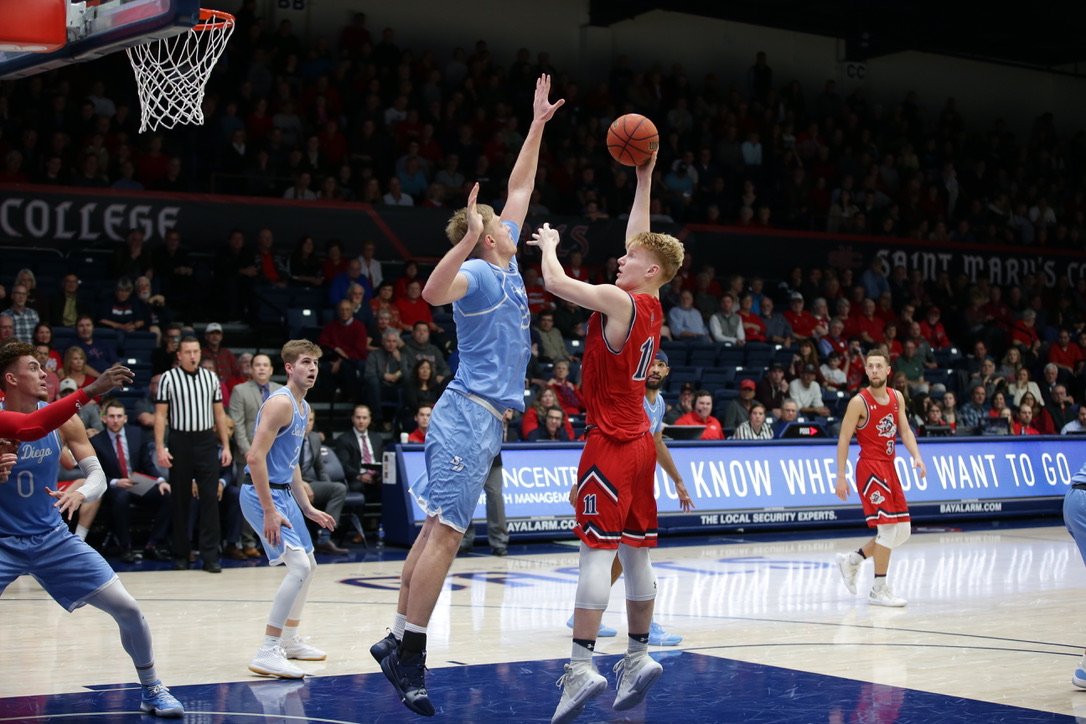 San Diego came out and scored the first points of the second half before the teams began trading buckets back and forth. With under 15 minutes to go in the game, the Gaels held a 47-35 lead over the Toreros as Fitts accounted for five of the first nine points for SMC and 24 points total on the night. Ford drained another three from deep, securing his 13th game with 20 or more points, as the Gaels then went on a 10-2 run to keep them well ahead of the Toreros.