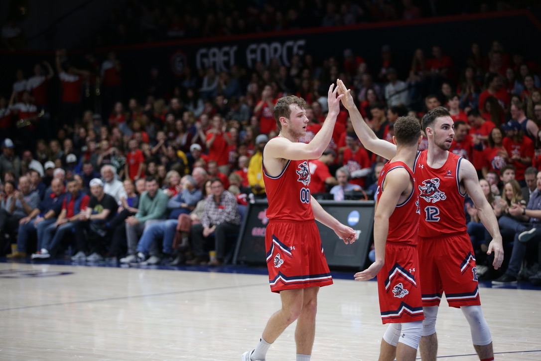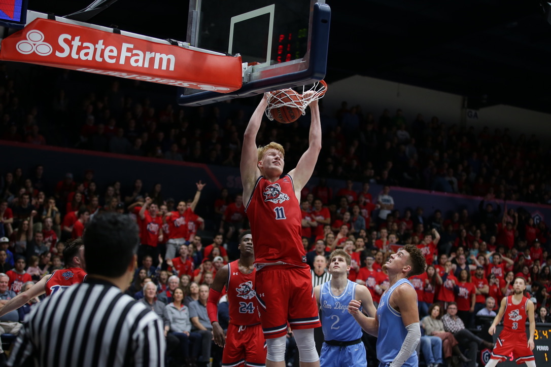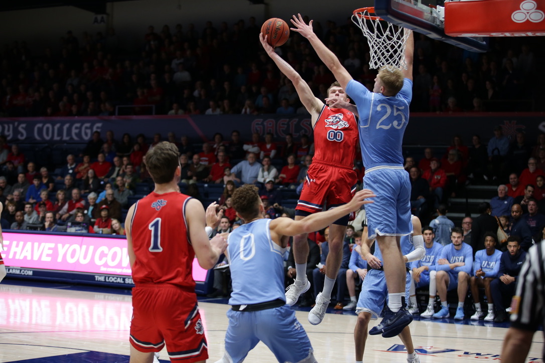 The Toreros then went on a 7-1 run that brought the score to 27-17. During San Diego’s run, they improved their shooting to 50 percent, however, the Gaels were holding San Diego to 16 percent three-point shooting with just one three made all half. A dunk from Matthias Tass gave the Gaels the momentum in the final moments of the half and went into the break with a 38-26 lead over San Diego.