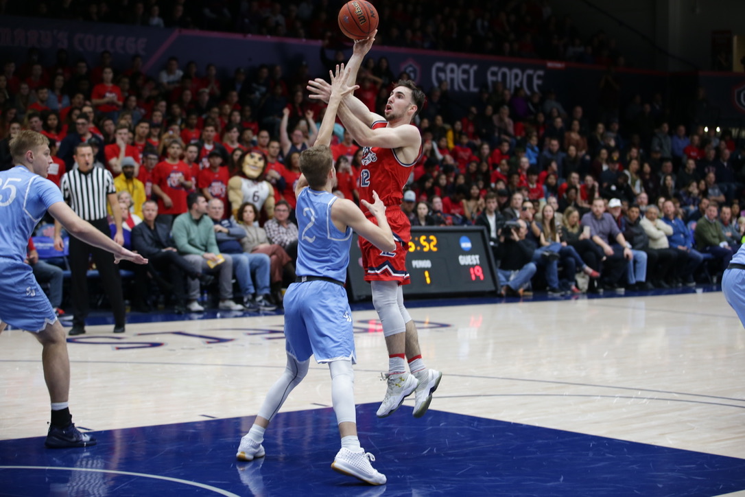 Jordan Ford got the scoring started for the Gaels on Saturday night with a driving layup that set the tone for the next ten minutes. The Saint Mary’s defense kept the Toreros scoreless on their first three attempts before San Diego was able to put points on the board. With 15:47 on the clock, the Gaels had taken control of a 13-4 lead and were on an 8-2 run since the 17th minute of the game.
