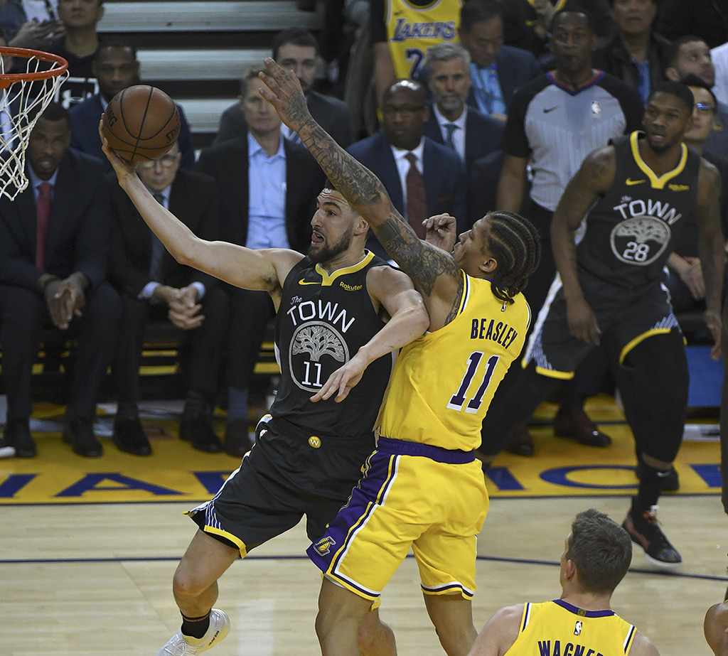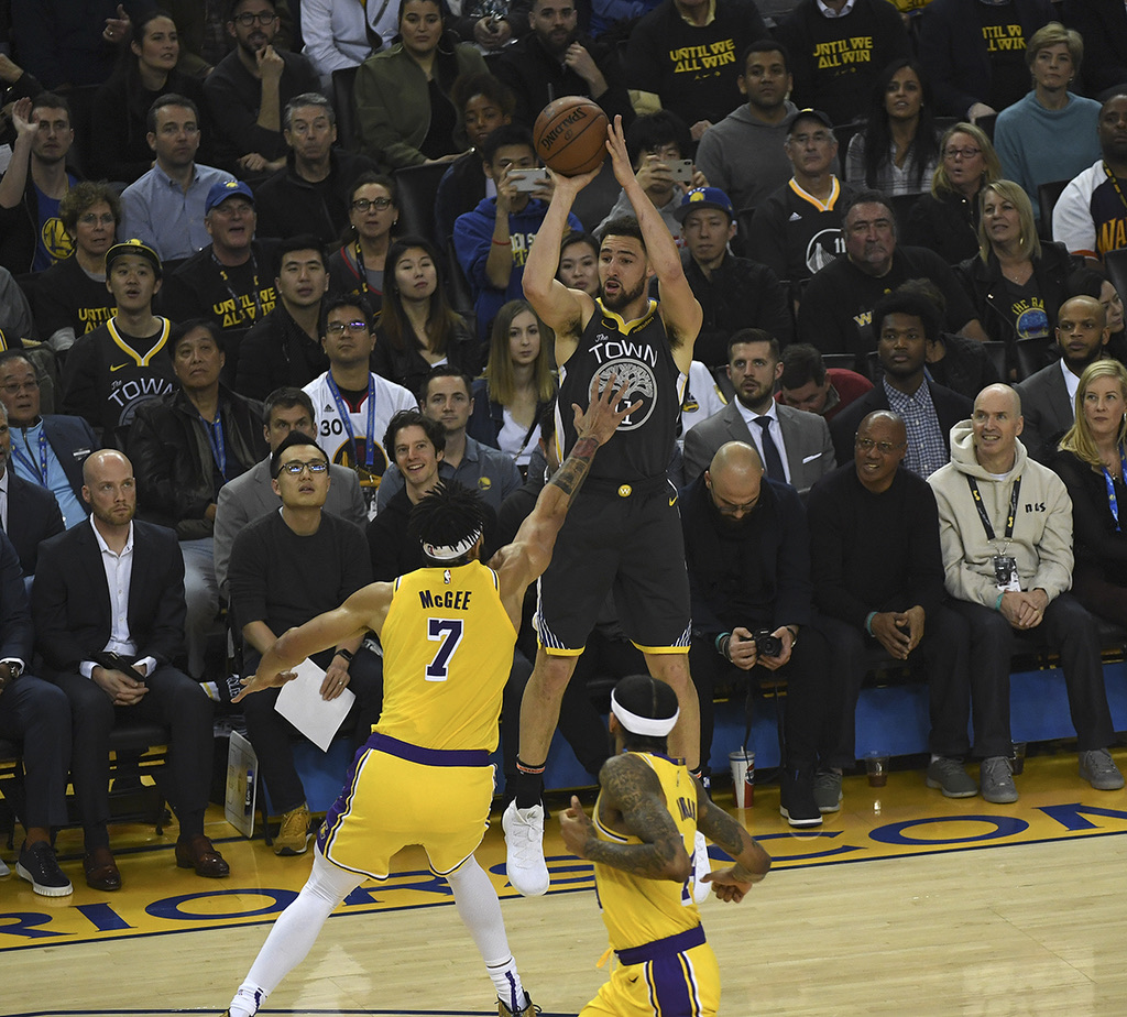 The Warriors won the game, 115-101, behind 28 points from Klay Thompson. The last time the Lakers played at Oracle Arena, on Christmas night, James left with a strained left groin and did not return to action until Thursday.