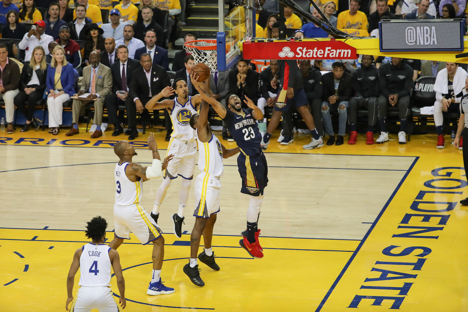 They would indeed tie that record and remain undefeated in the postseason at home by sending the Pelicans fishing 113-104. As head coach Steve Kerr said, Steph Curry is ‘Back to being Steph’ scoring 28 points, Kevin Durant finished with 24 and Klay Thompson had 23 points.