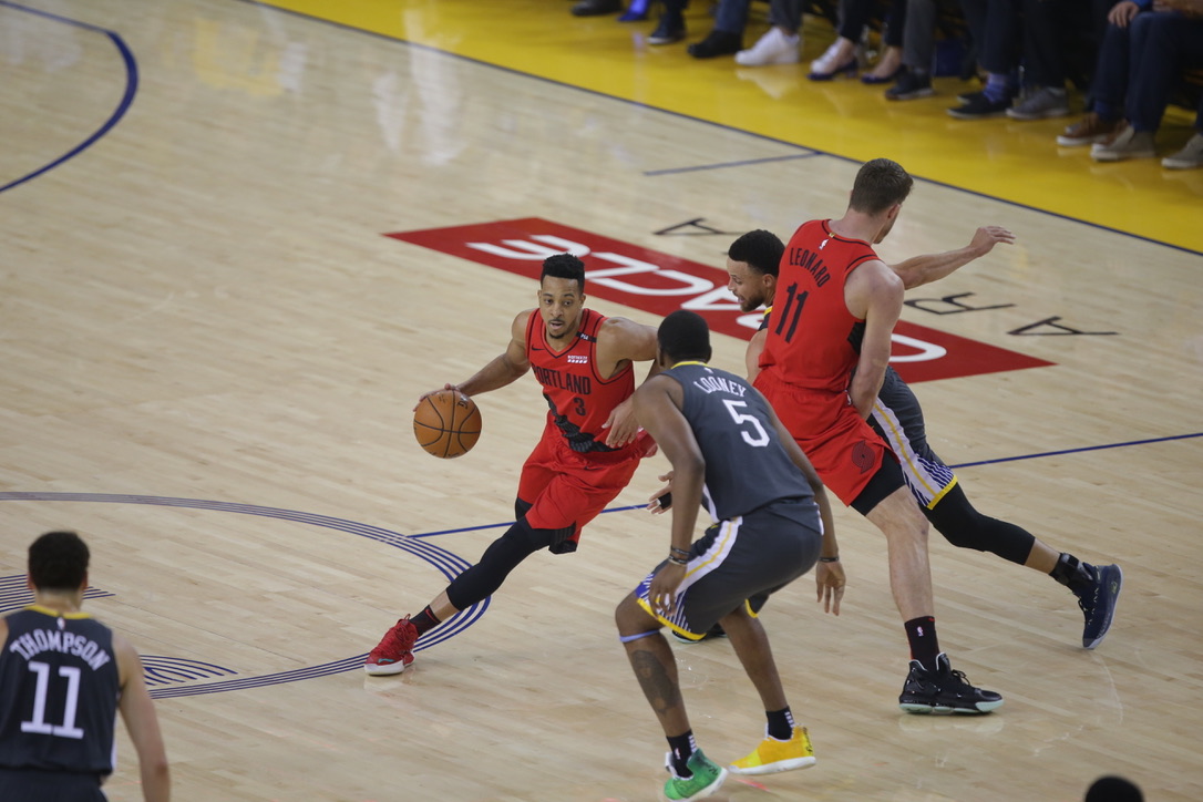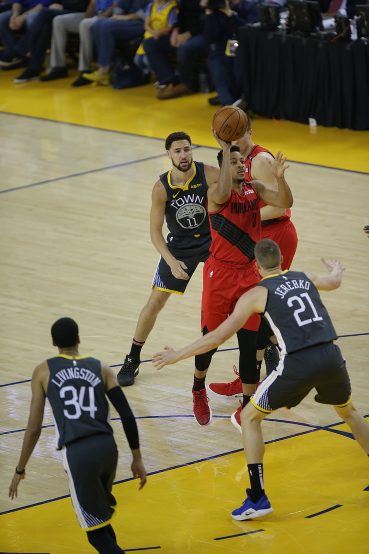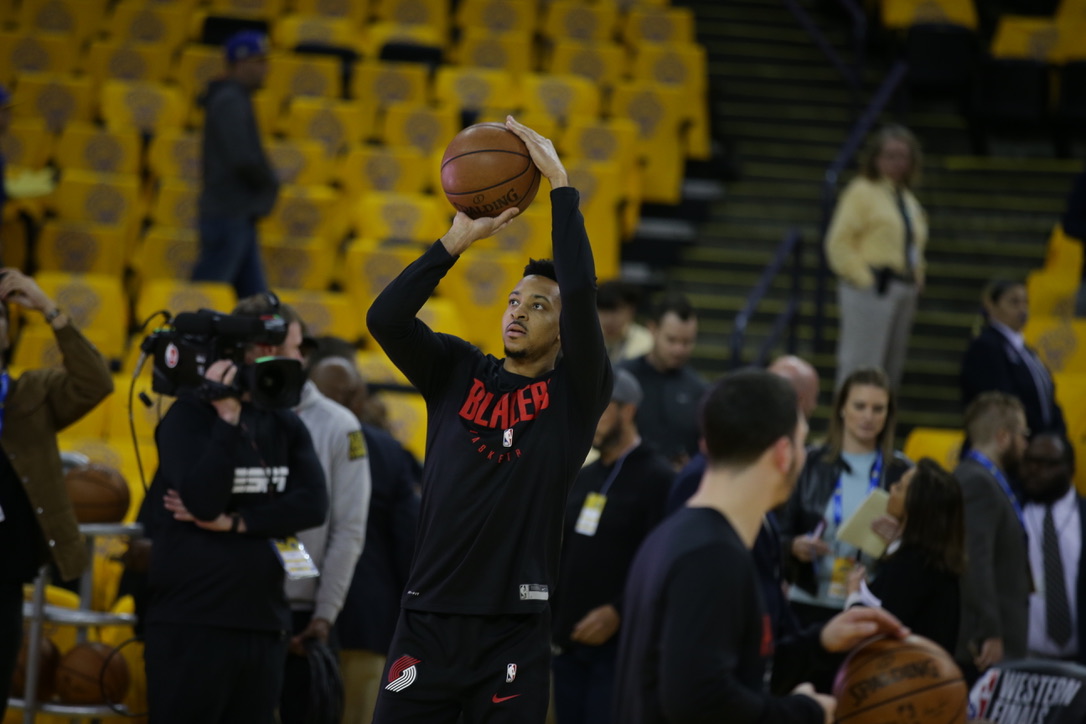 Golden State Warriors Portland Trail Blazers Game Two NBA Western Conference Finals Point Guard #3 CJ McCallum Photos by Tod Fierner (Martinez News-Gazette)